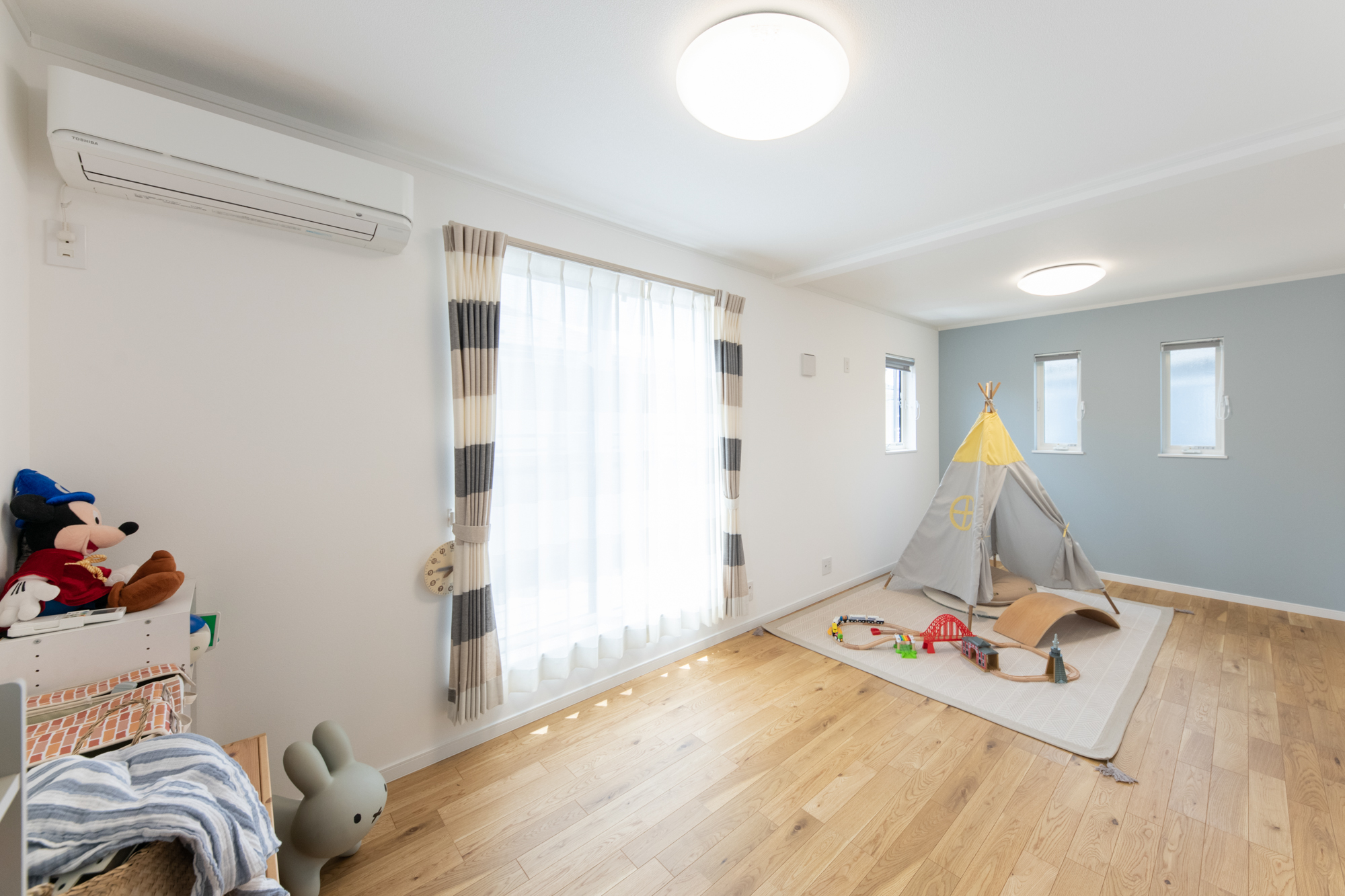 オモチャを置いても余裕の広々とした空間。お子様も思いっきり遊べます。