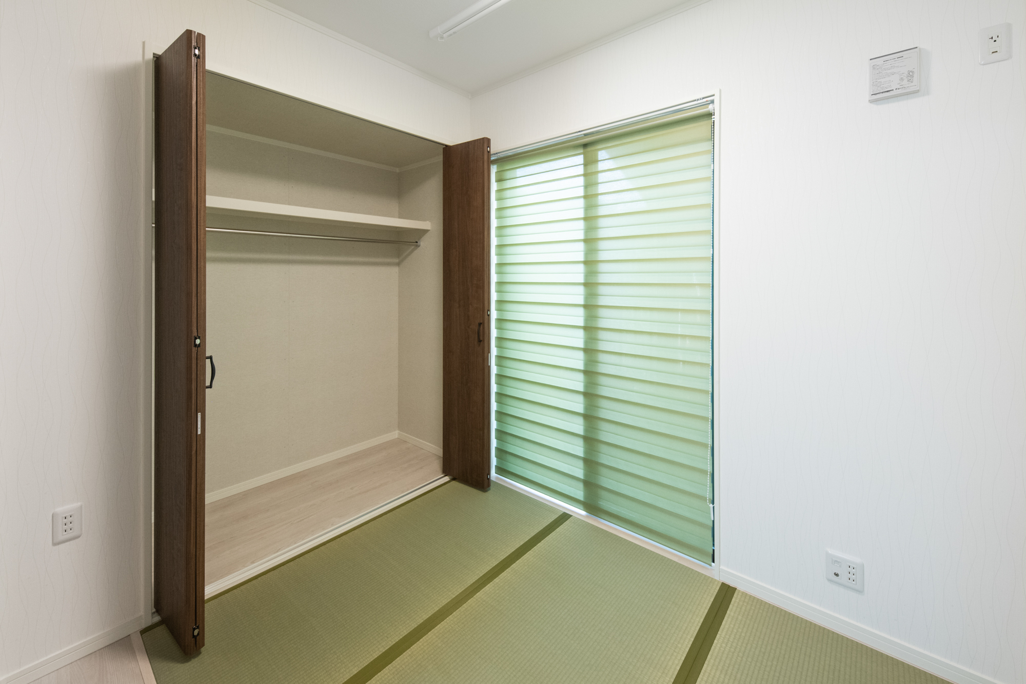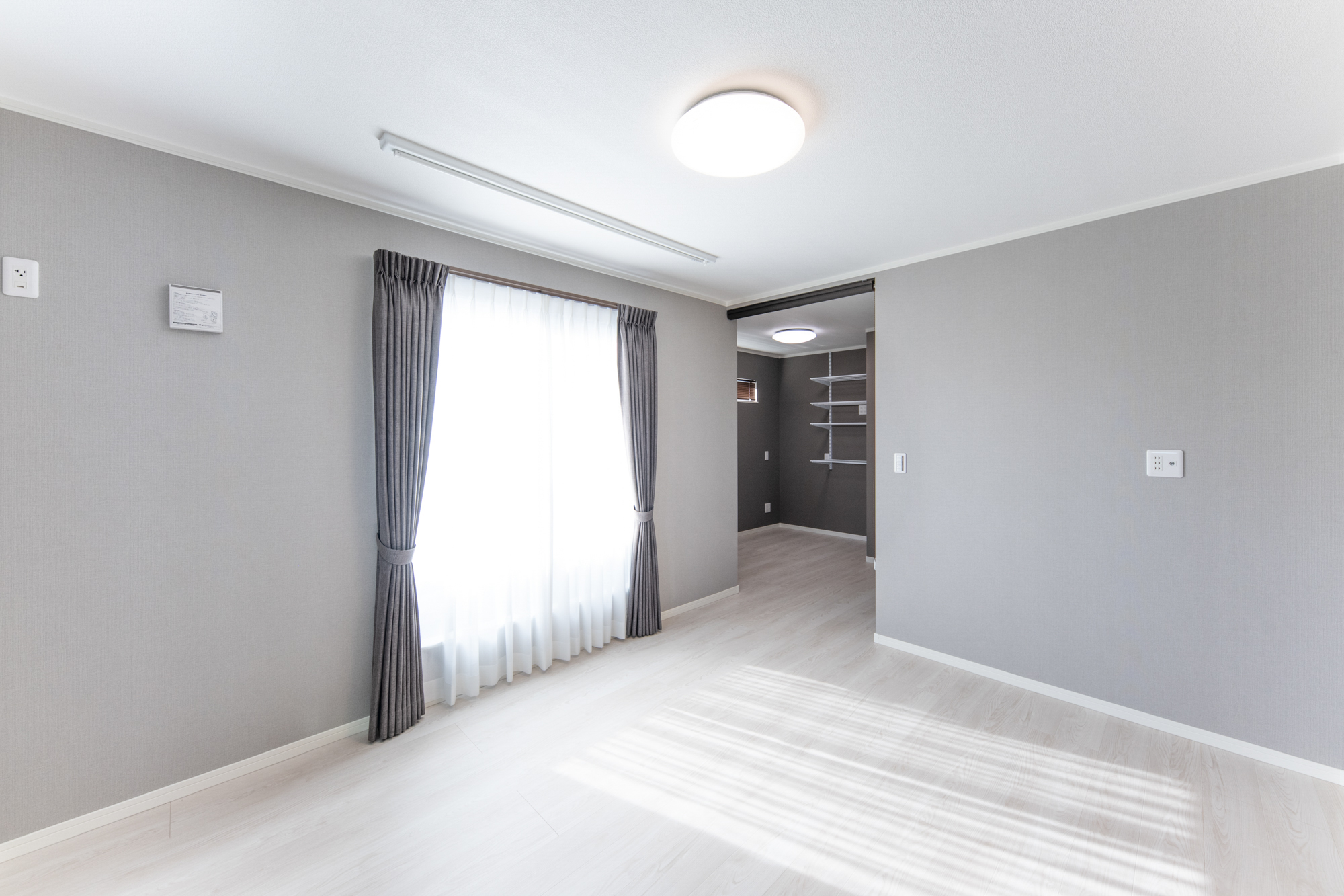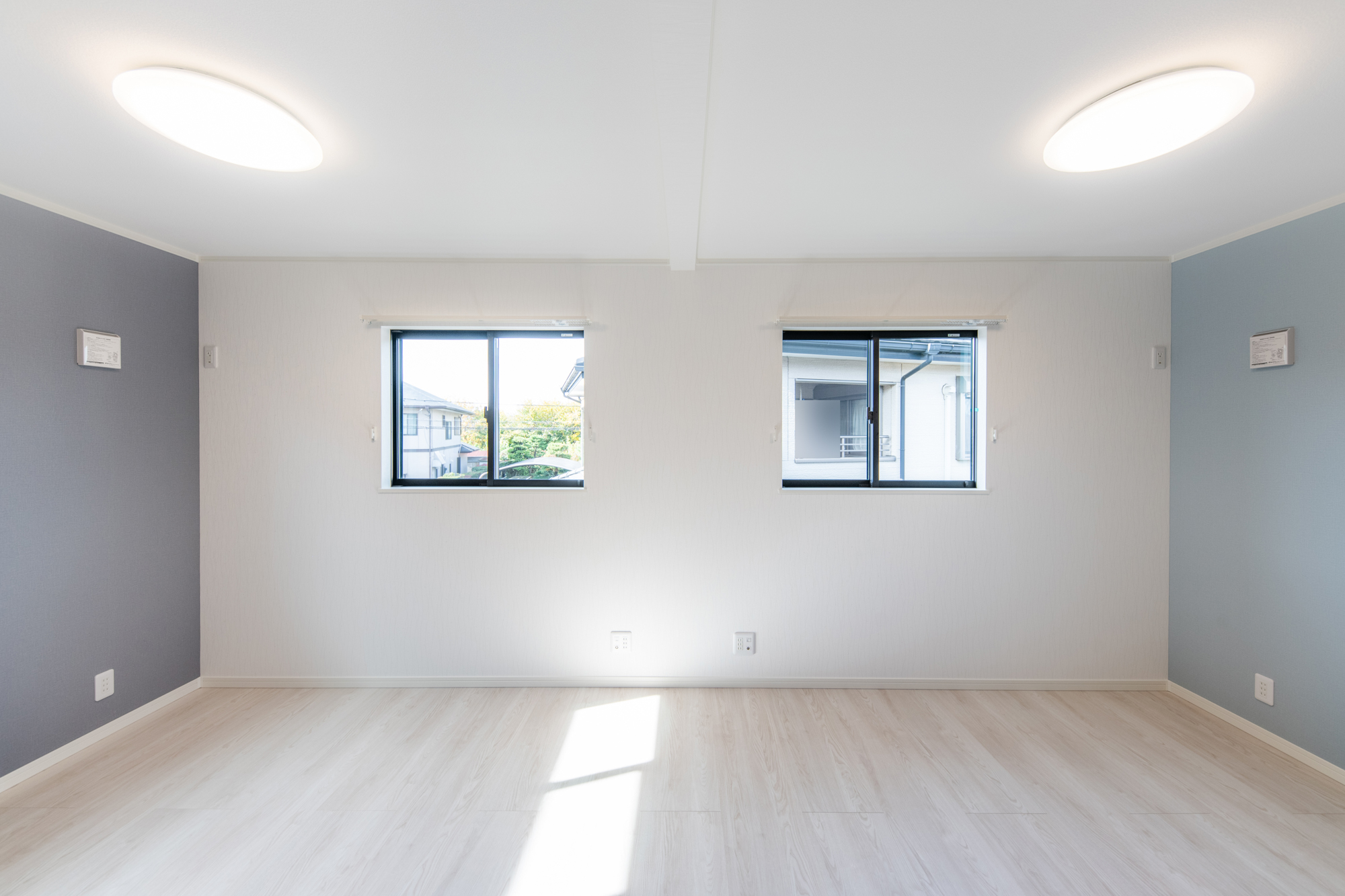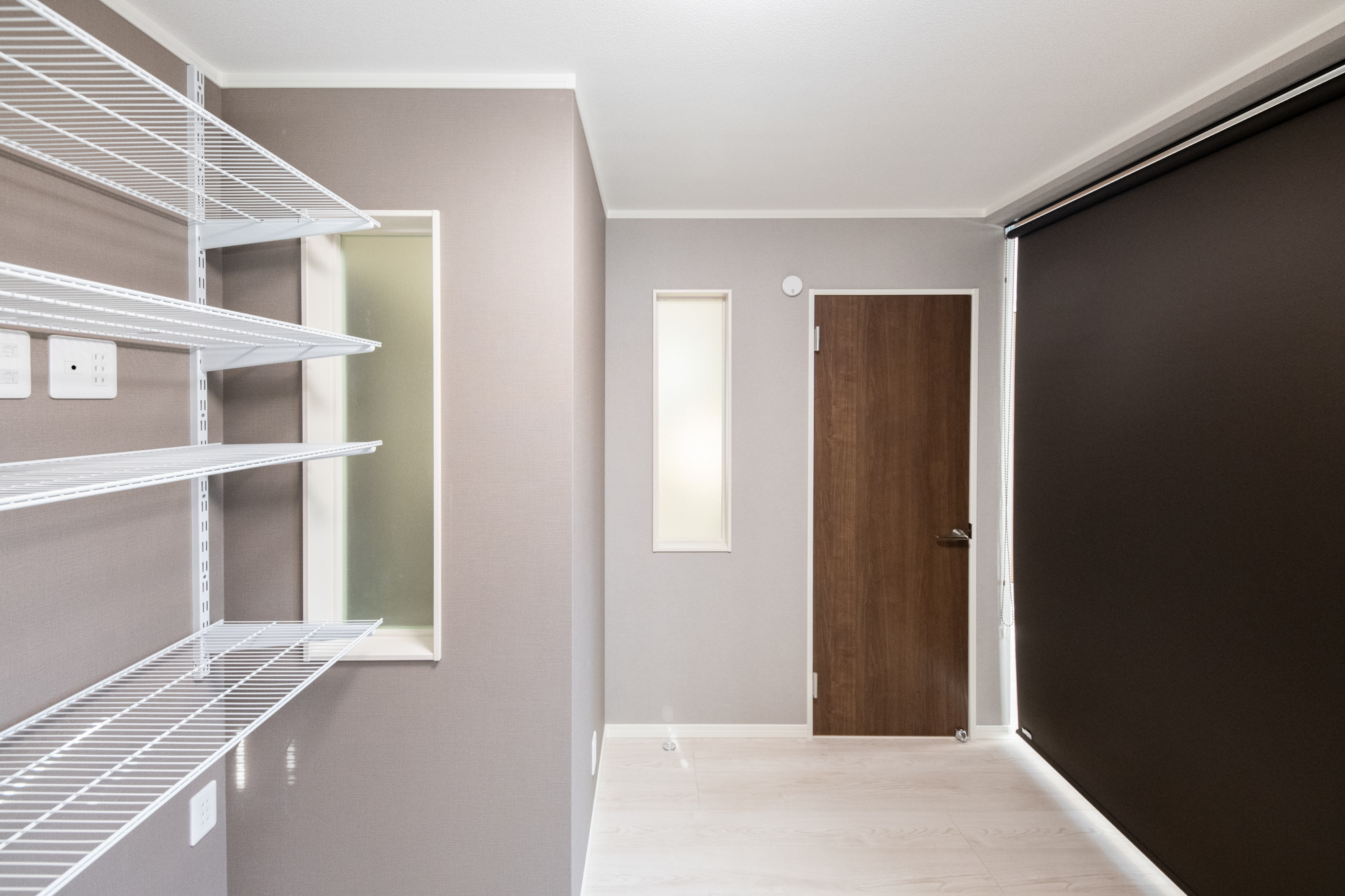 ハイスタッドで開放感のあるLDK。壁付けキッチンを採用し、スペースを最大限に活かせる空間に仕上がりました。 また、リビング階段・洋室はロールスクリーンで仕切れる様になっているので、つながりを大切にしつつプライベートな時間も過ごせる間取となっています。