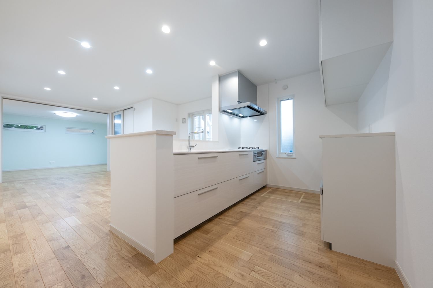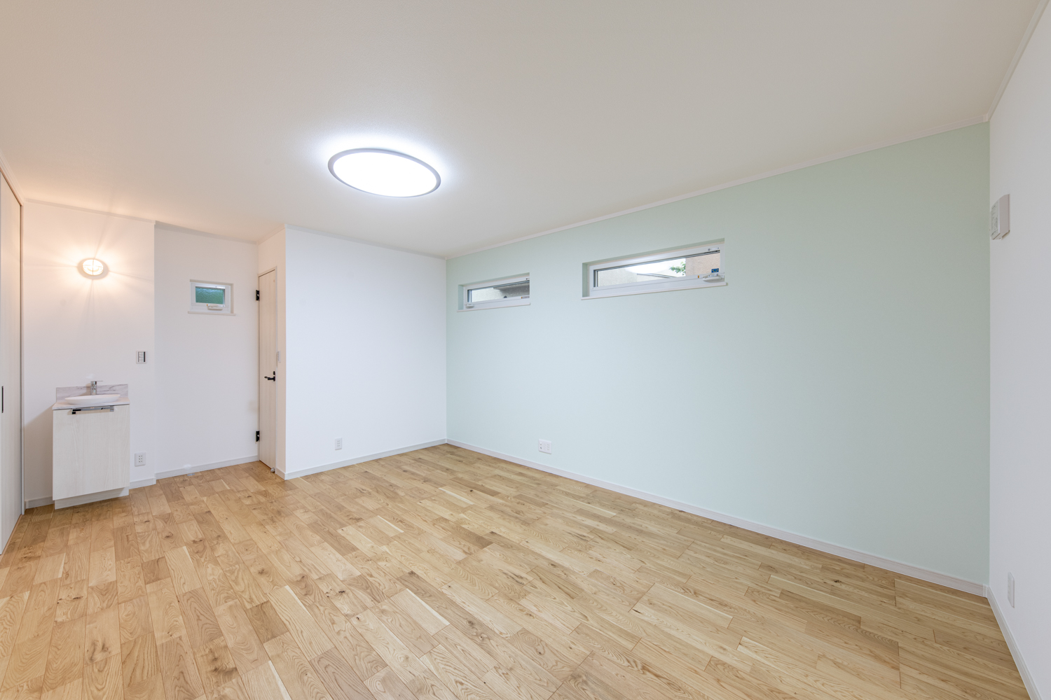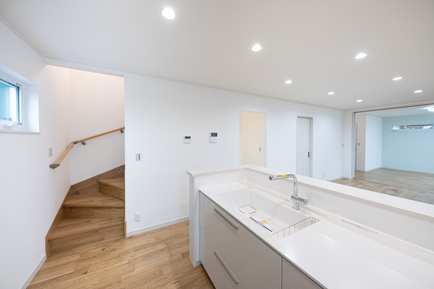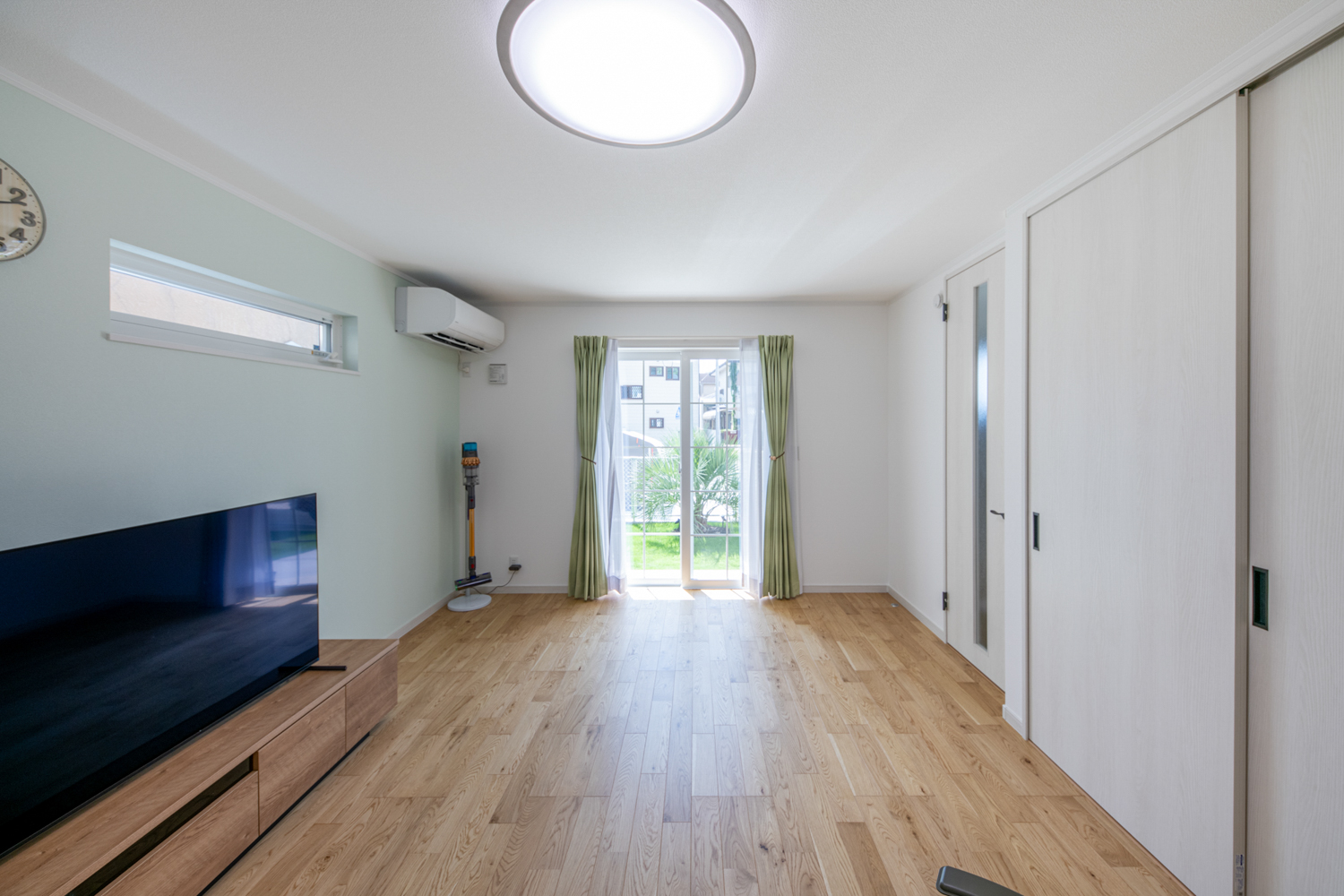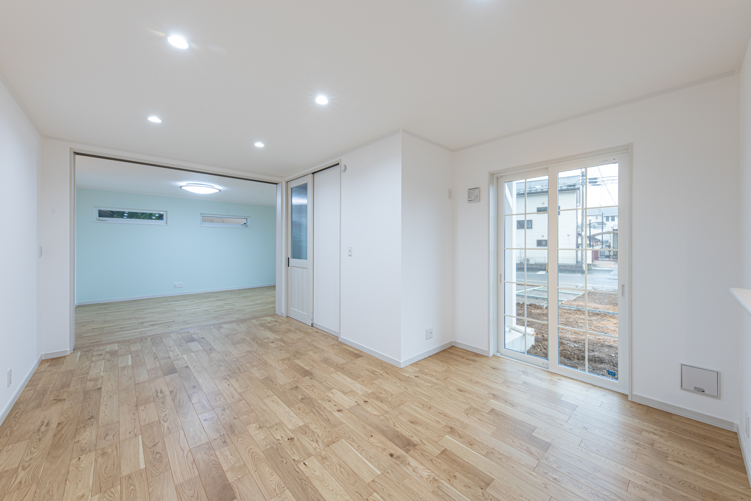 青い空と海が似合うカリフォルニアスタイルの外観。友人や親戚を呼んでホームパーティーが楽しめる広々としたリビング。おしゃれな格子窓から流れる風を感じながらゆったりと過ごせるお家が完成しました。