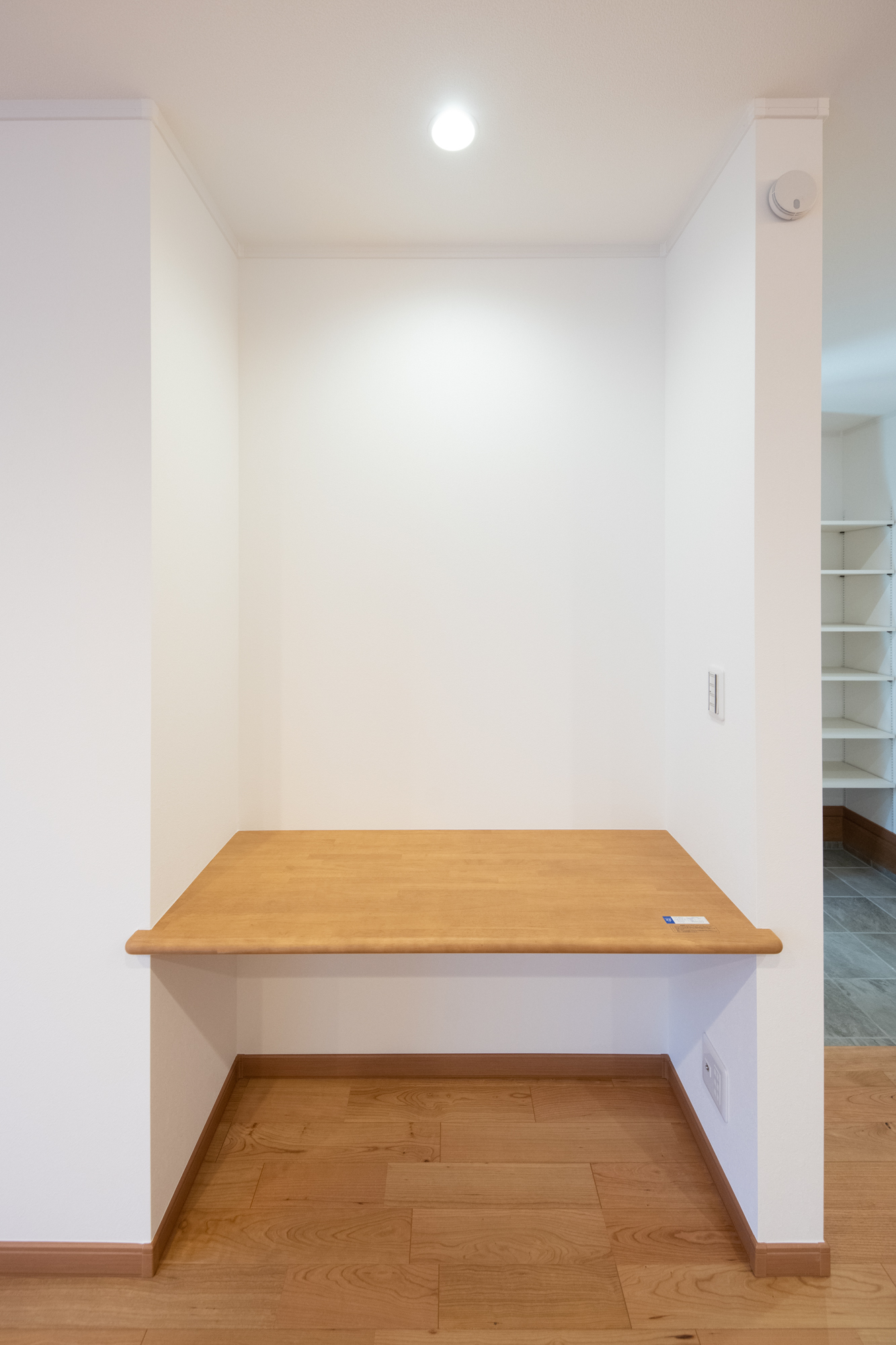 リビング横には用途多彩なカウンターを設置しました。パソコンコーナーやお子様の宿題スペースにも利用できます。