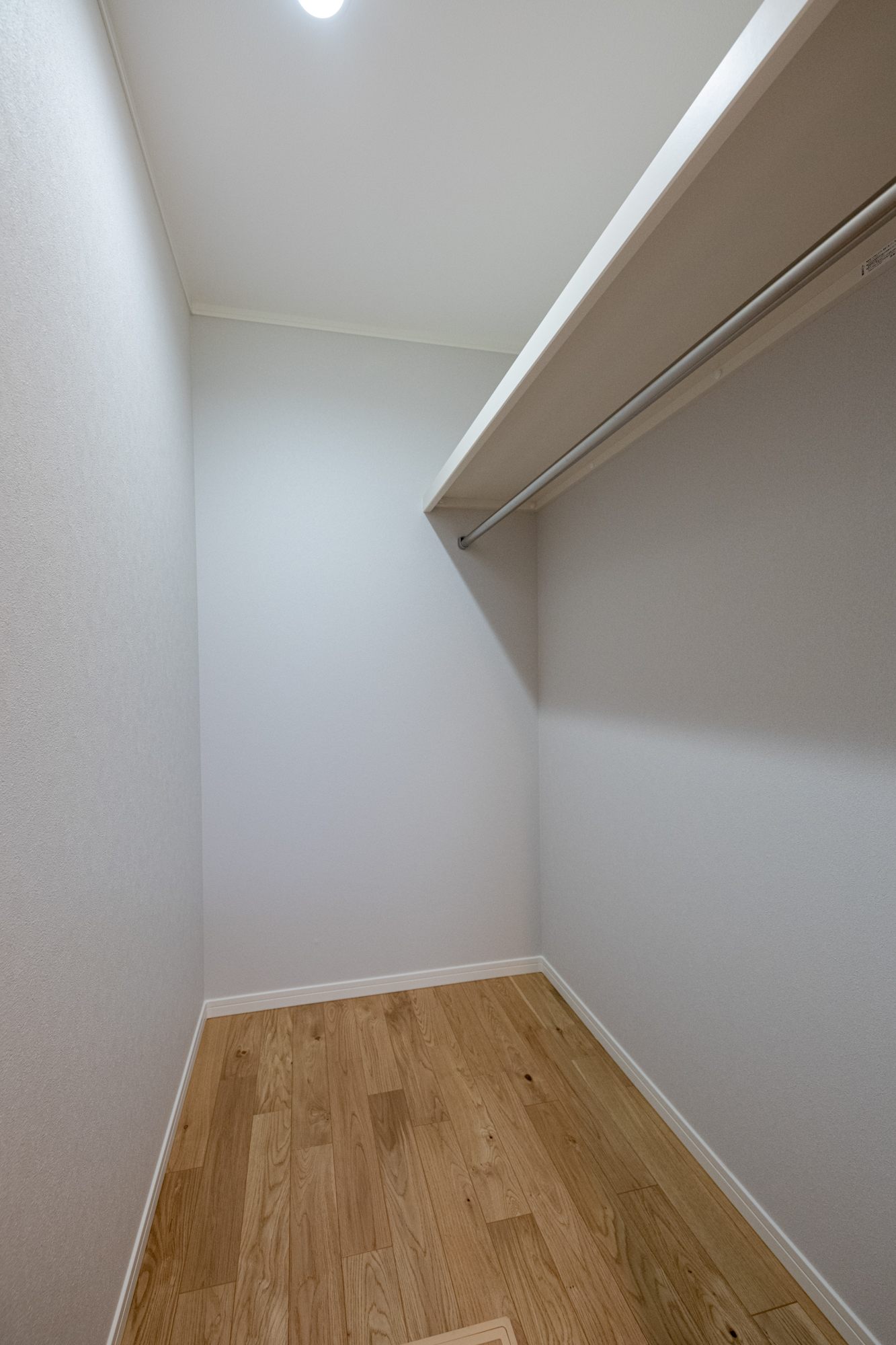 サニタリールームにはファミリークローゼットがあり、洗う・干す・しまうが一ヶ所で完結できるよう便利な間取となっています。