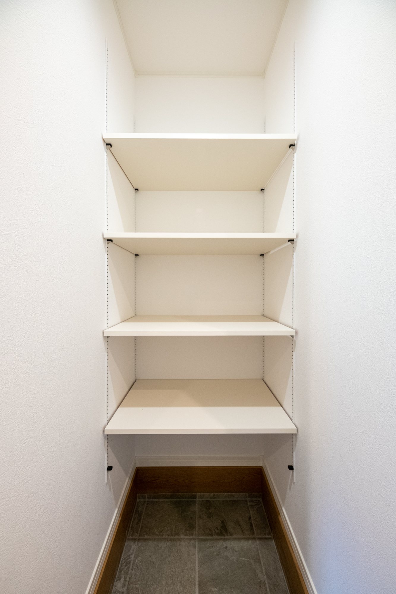 ゴルフバック・アウトドアグッズなど趣味の道具置き場としても大活躍な収納スペース。