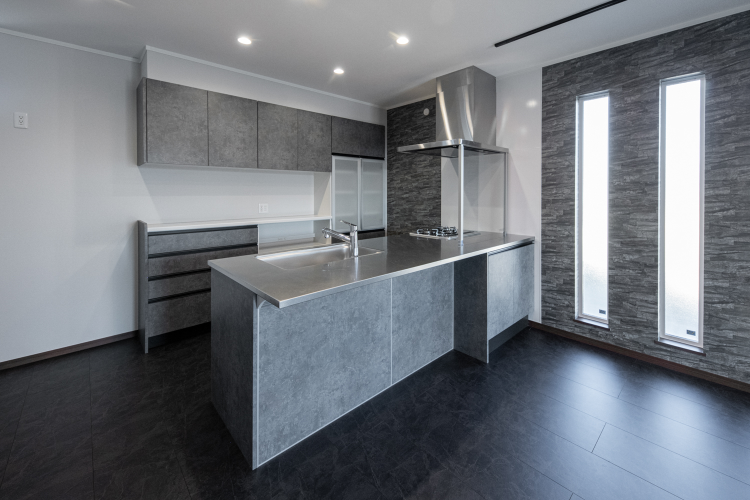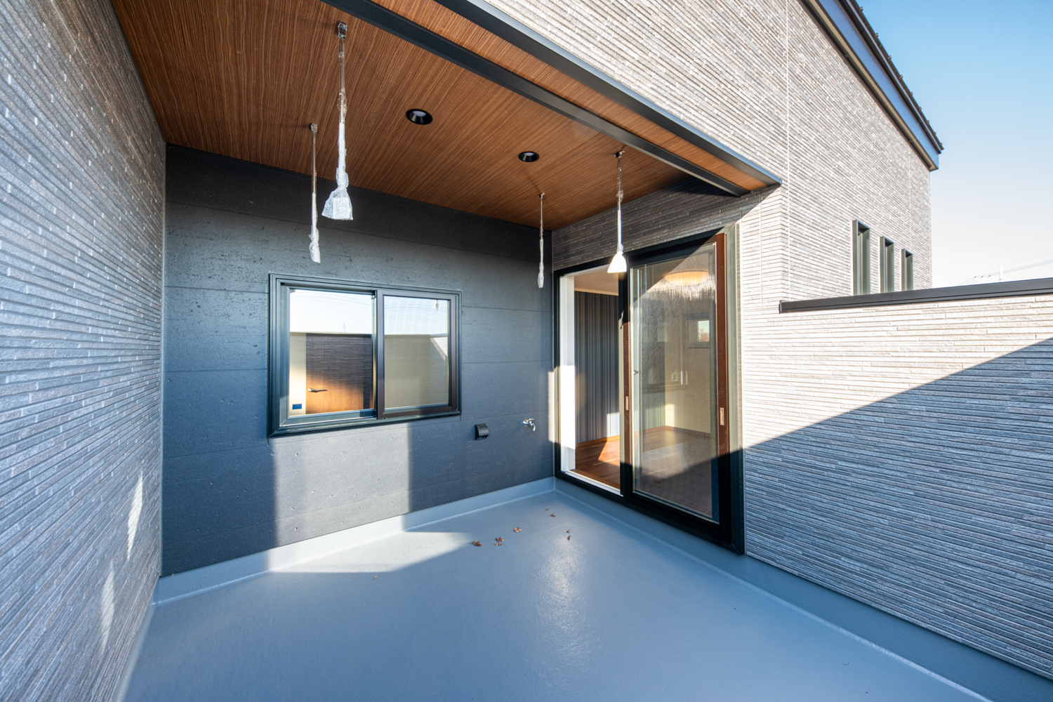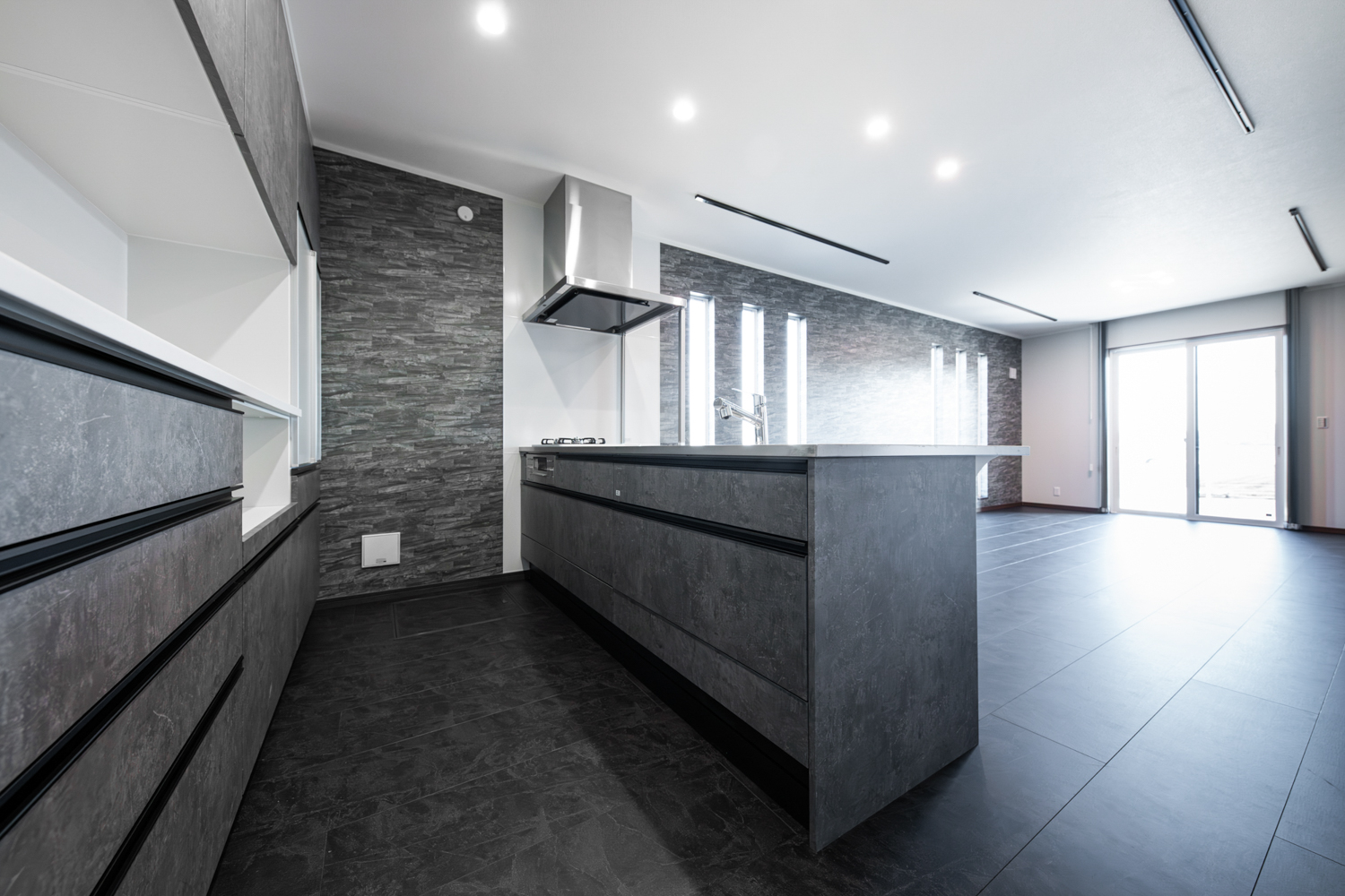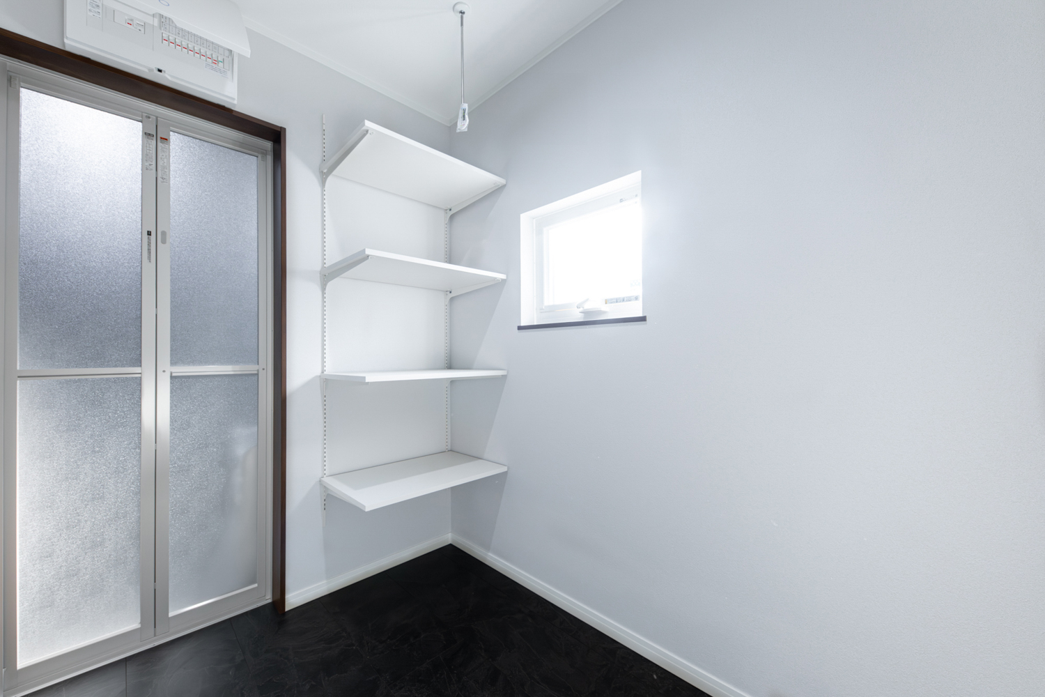 天井が高く、窓から沢山の光を取り込む開放的なリビング。1階はパントリーや洗面室への行き来がしやすい回遊動線を取り入れ家事のちょっとしたストレスを減らし効率の良い間取りに。2階には家族が共有で使えるファミリークローゼット設え、1つの場所で衣類が管理できるよう工夫し、「住みやすさと使いやすさ」が考えられたお家が完成しました。