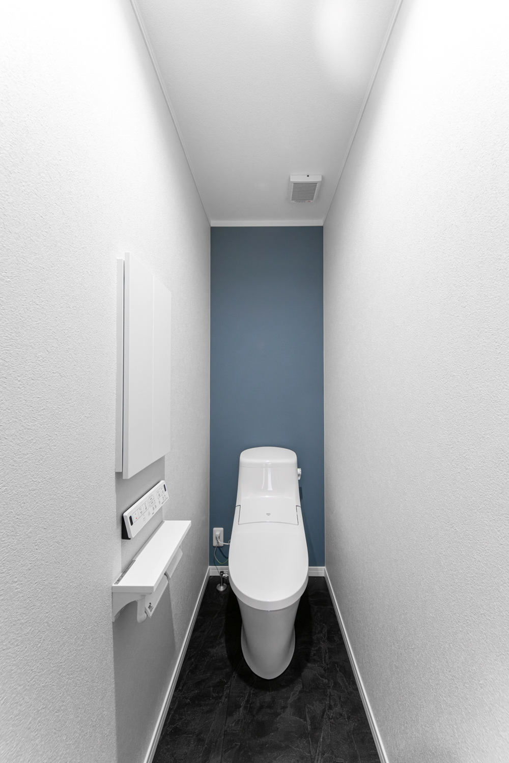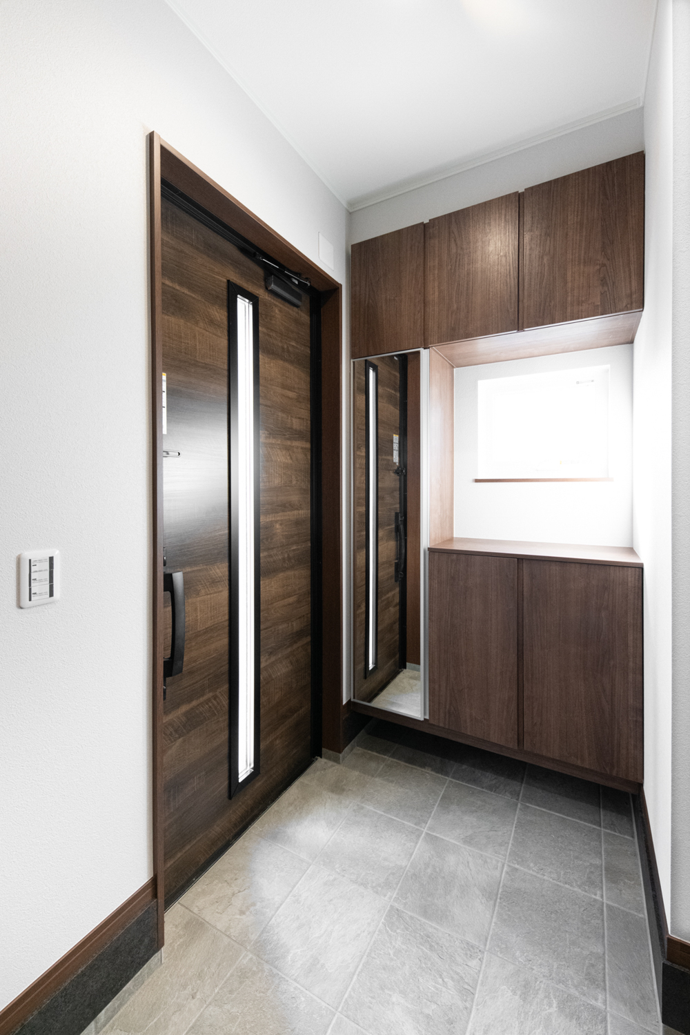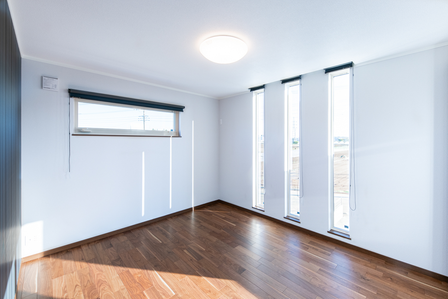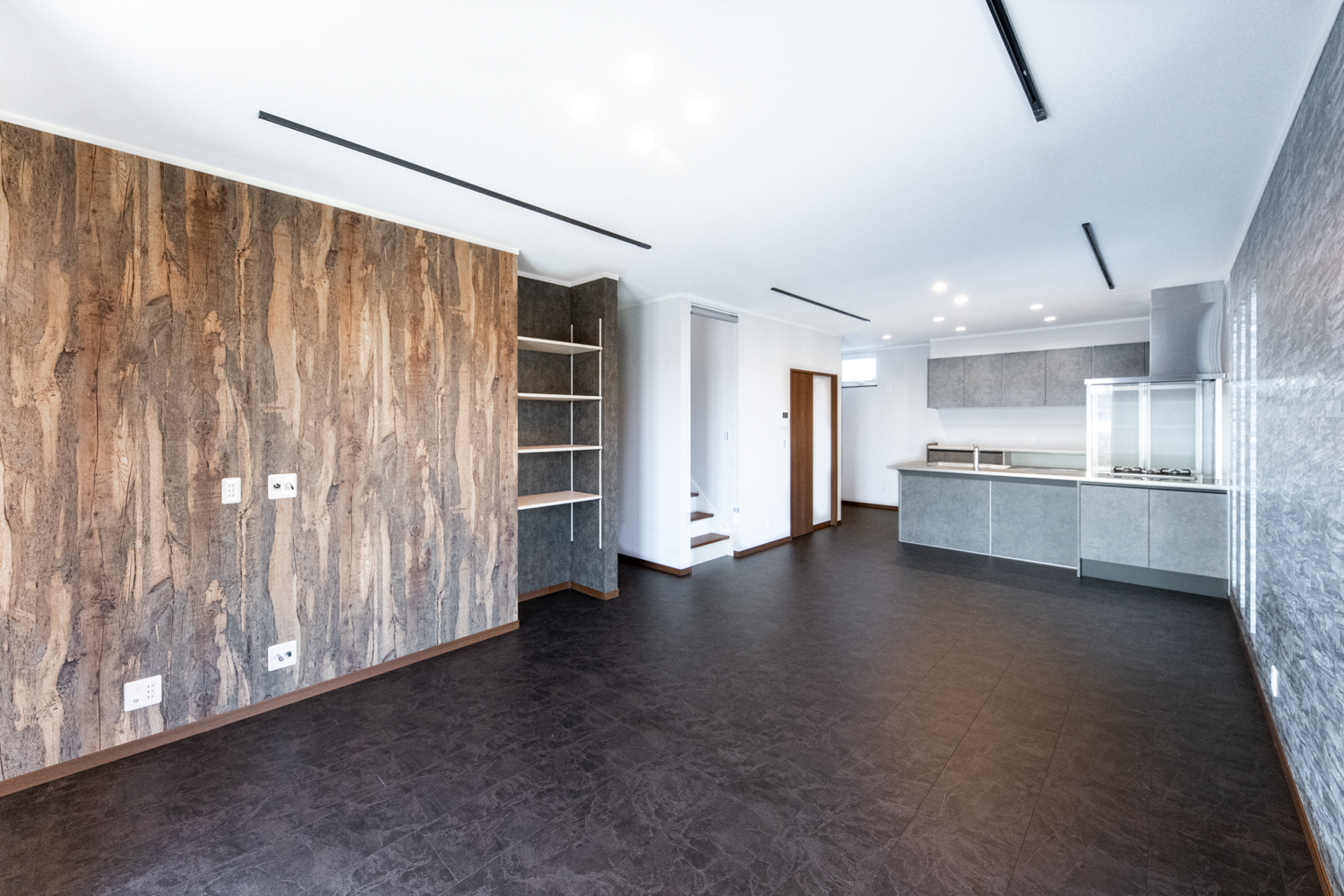 天井が高く、窓から沢山の光を取り込む開放的なリビング。1階はパントリーや洗面室への行き来がしやすい回遊動線を取り入れ家事のちょっとしたストレスを減らし効率の良い間取りに。2階には家族が共有で使えるファミリークローゼット設え、1つの場所で衣類が管理できるよう工夫し、「住みやすさと使いやすさ」が考えられたお家が完成しました。