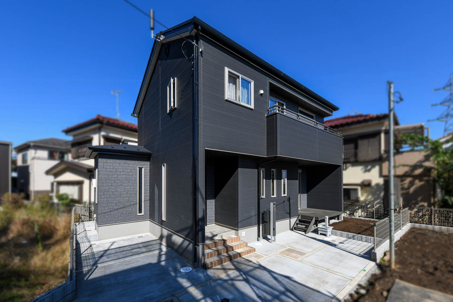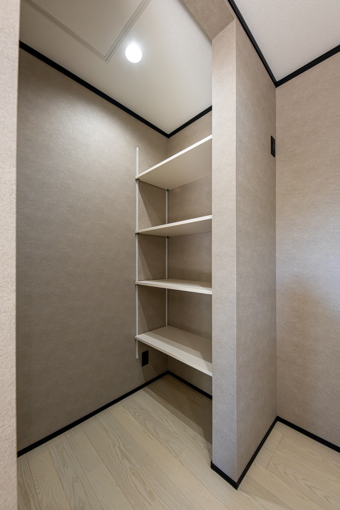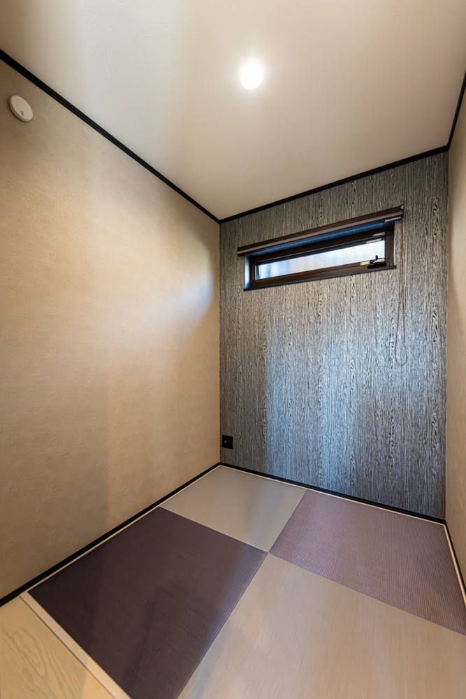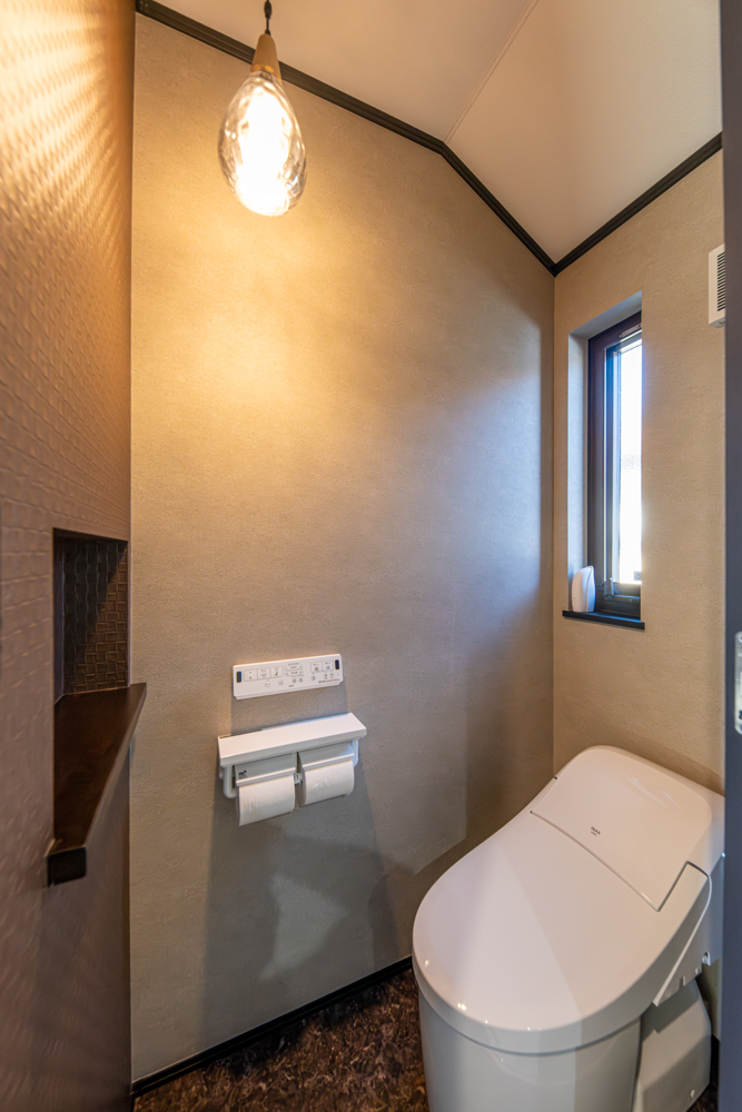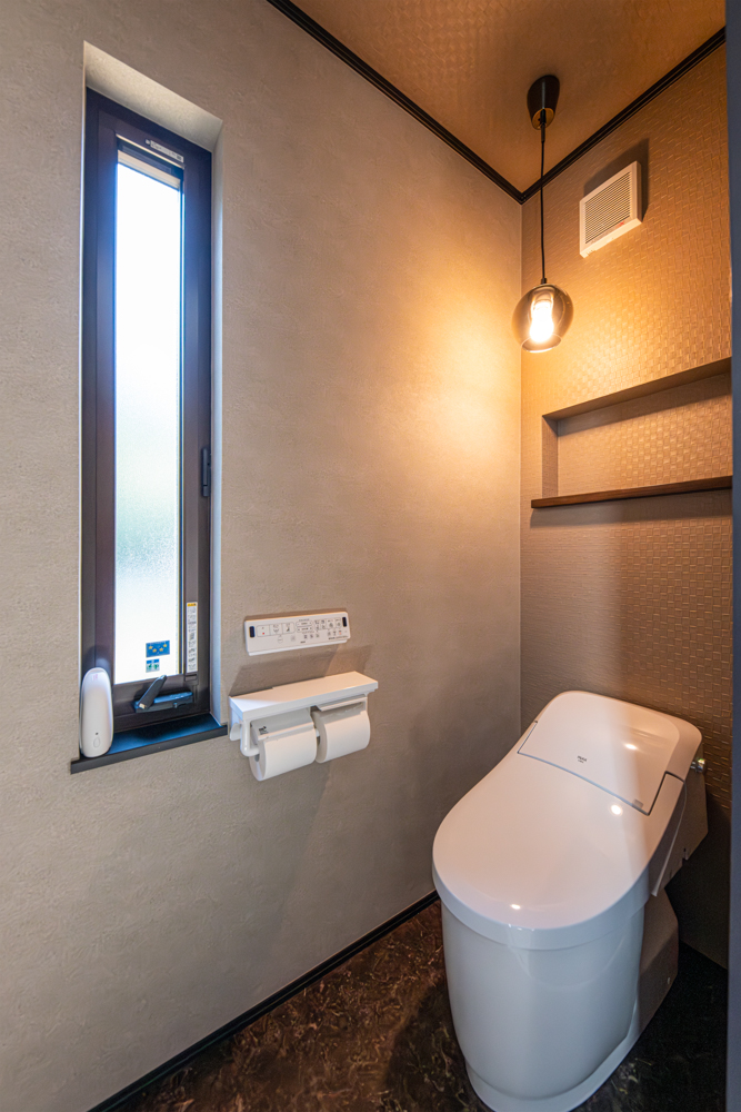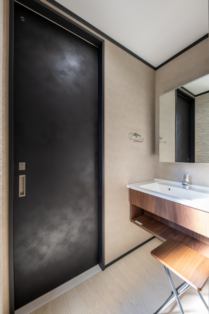 水回りを2階に設置した生活感を見せない間取り。モルタルやコンクリート調をあしらったモダンな空間をメインに常識にとらわれないスタイルの和室や異国の風を感じる優雅な洋室など個性と上質さが共存するお家が完成しました。