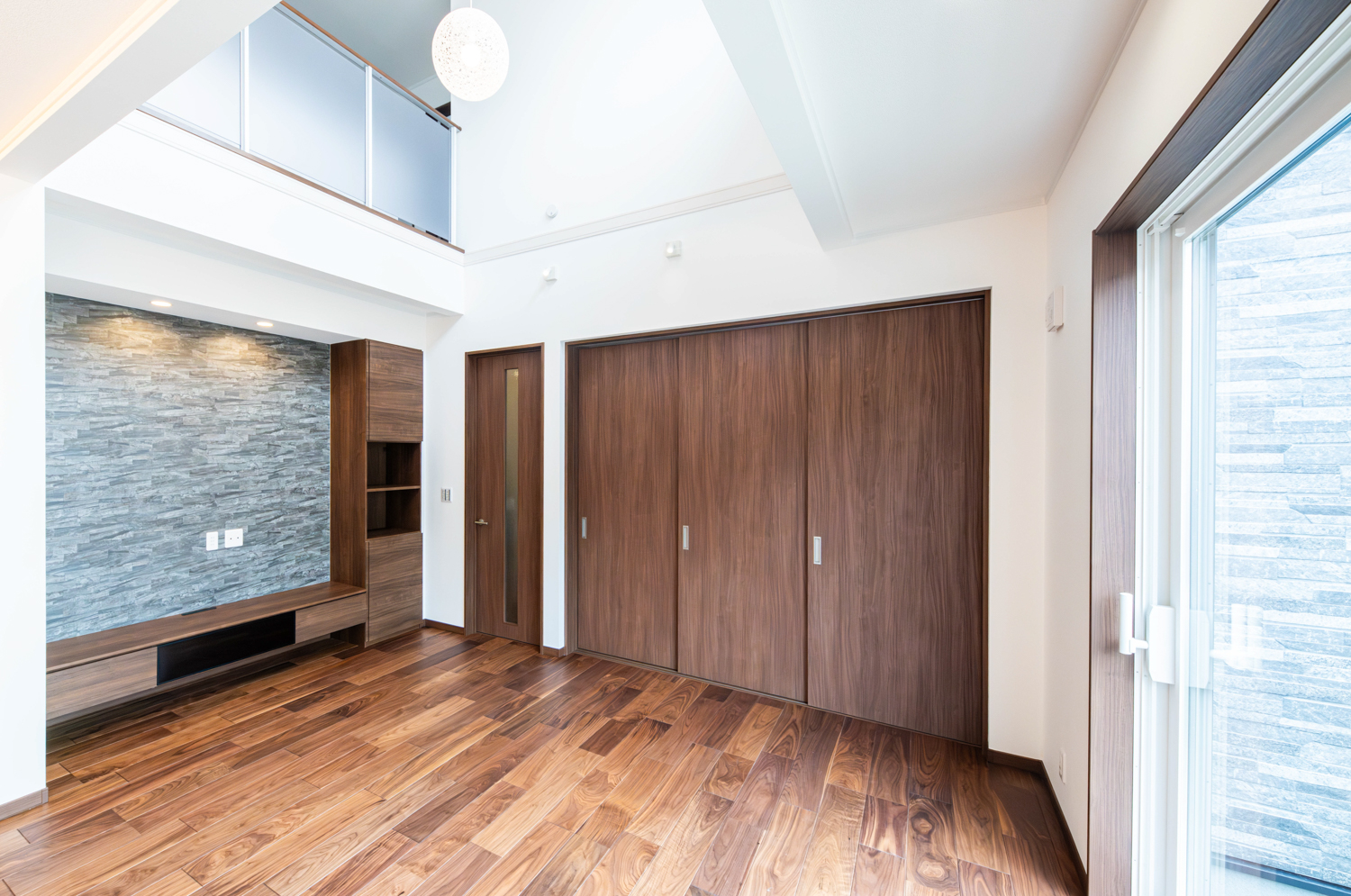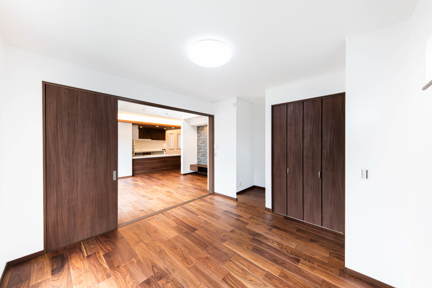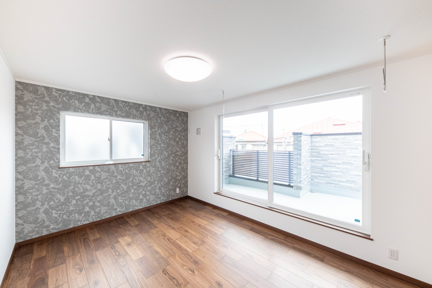リビング横、8.25帖洋室。1階LDK、洋室2部屋は床暖房完備。寒い冬も足元から暖かく快適に過ごせます。