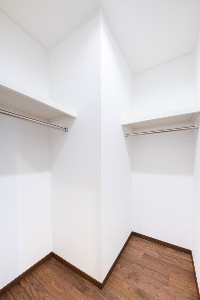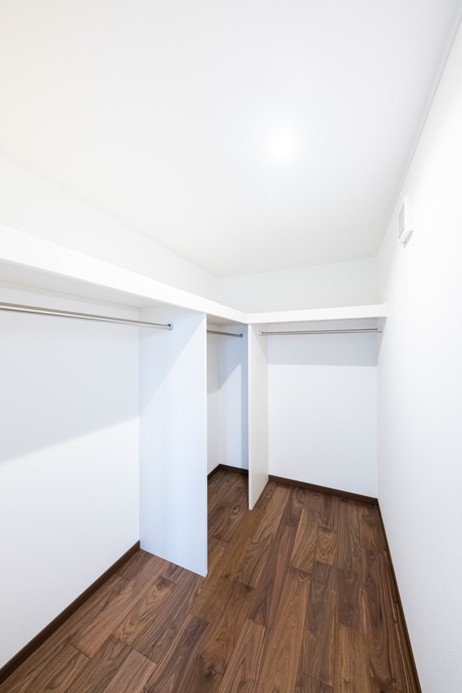 2階、3帖のウォークインクローゼット。廊下からみんなが出入りできる家族共有のスペースです。