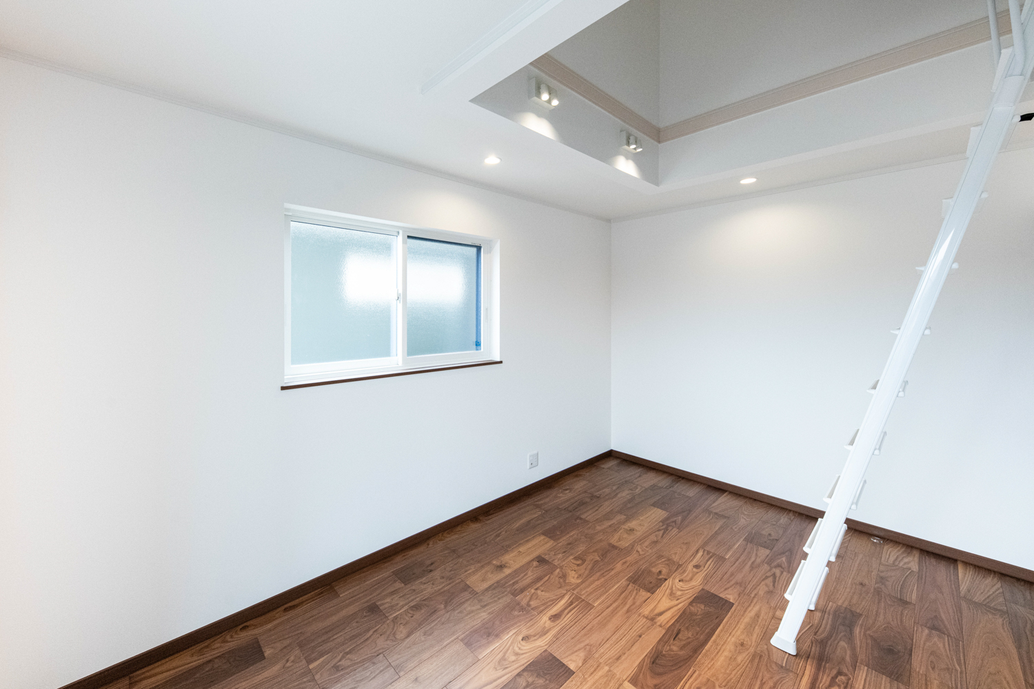 ロフト付き、6.75帖洋室。窓から自然のやさしい光が降り注ぐ室内。