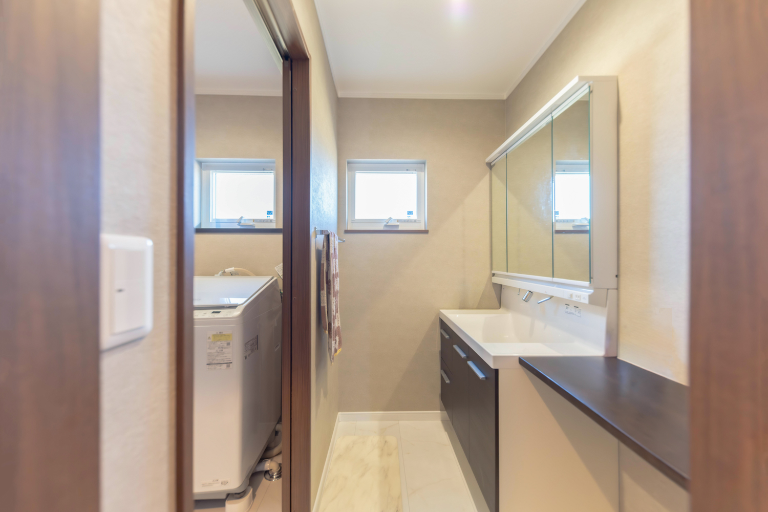 外と内のつながりを楽しみながら、家族と過ごすひとときを豊かに。 家事も身支度もスムーズに叶う、心地よいお家。