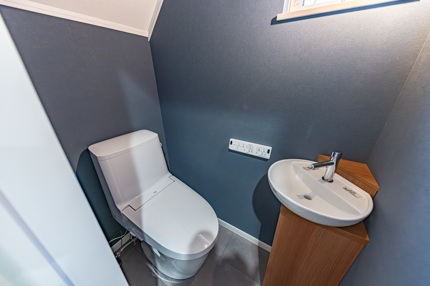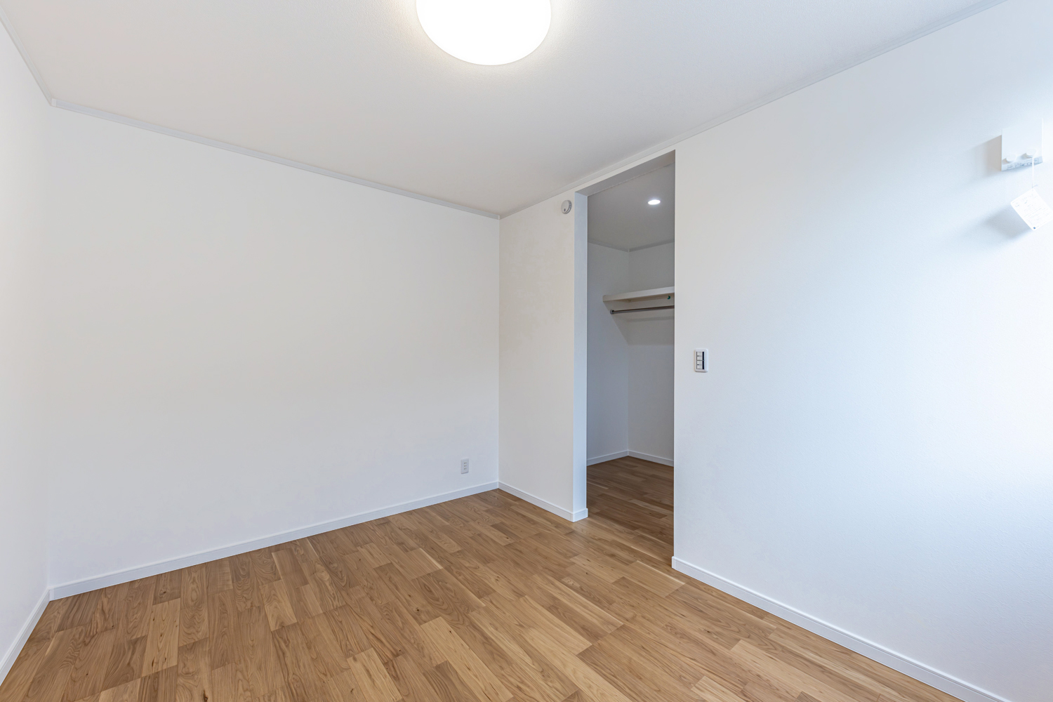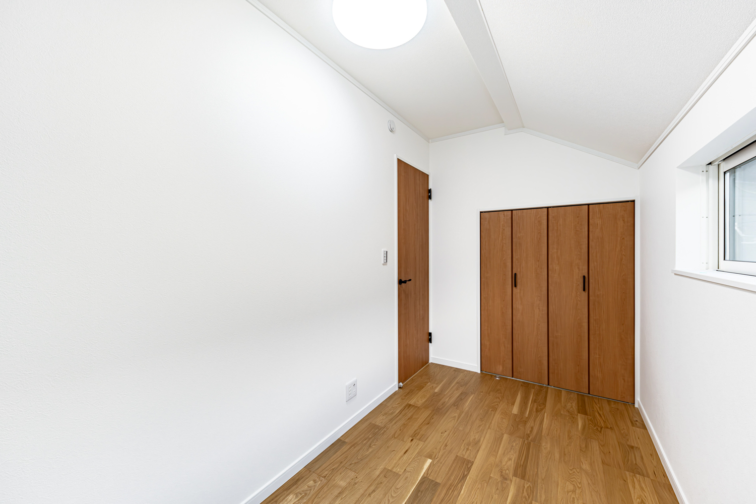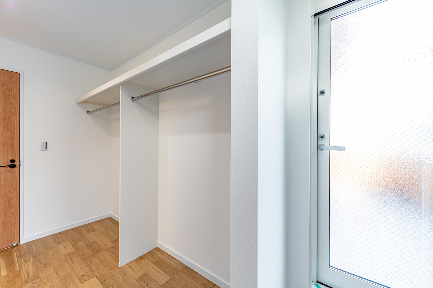 折上げ天井とダウンライトで開放感を演出した23帖のリビング。光や風を遮らないオープン階段や、収納付きのペニンシュラキッチンが暮らしを心地よく支えます。2階には将来的に2部屋にできる洋室や、3方向から出入りできるウォークインクローゼットを設計。バルコニーからそのまま収納へ繋がる洗濯動線も魅力です。随所に工夫が光る、収納豊富なお家が完成しました。