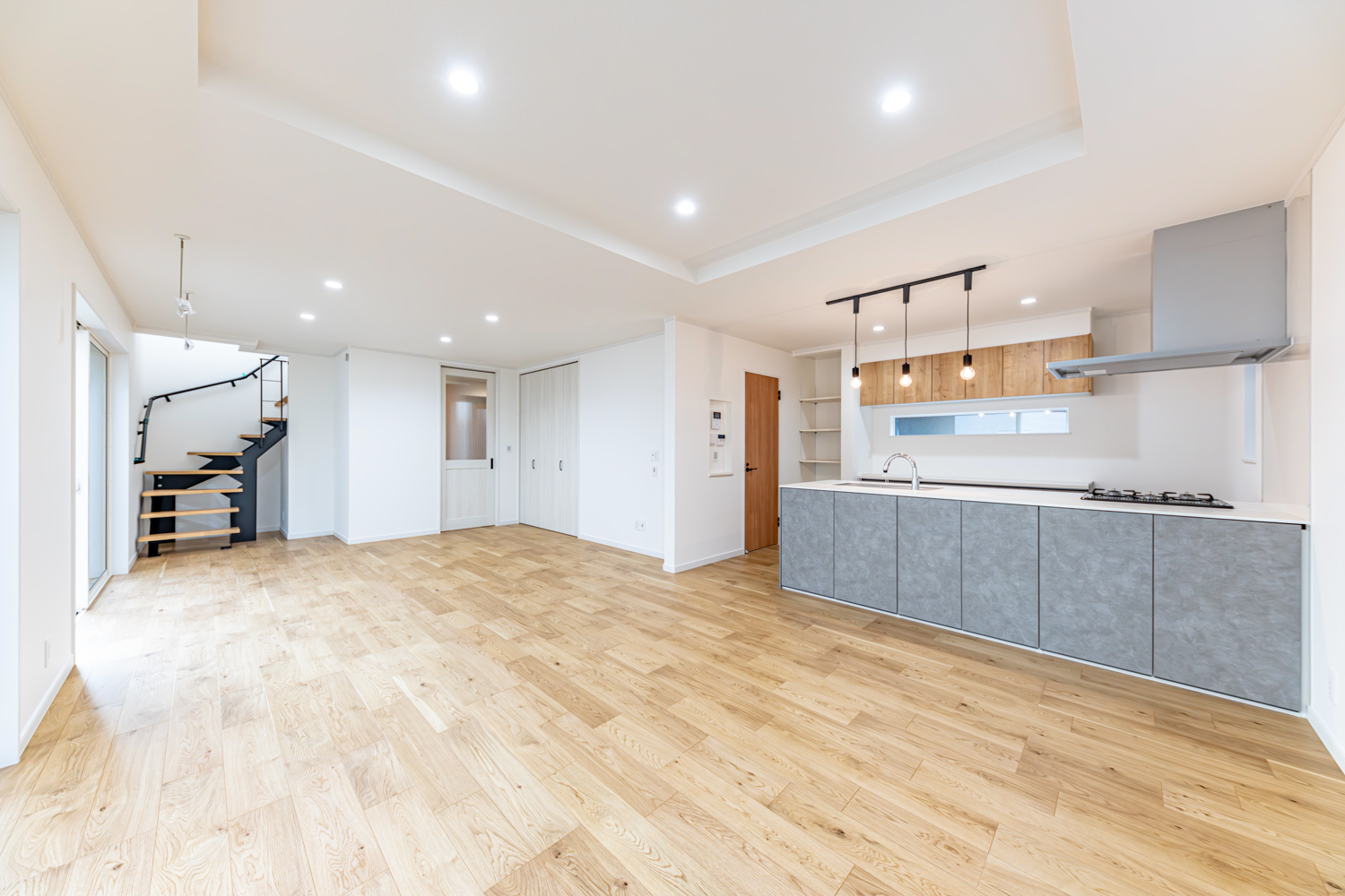 開放感あふれるリビングと、光や風を届けるオープン階段。 豊富な収納と工夫された動線で暮らしやすさを叶えたお家。