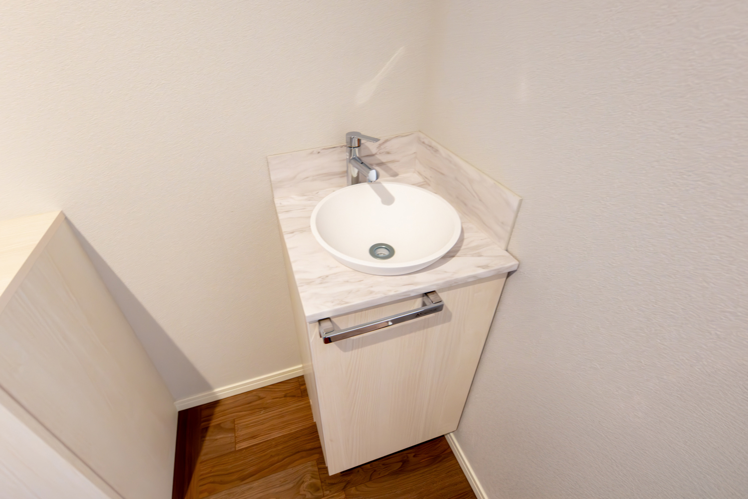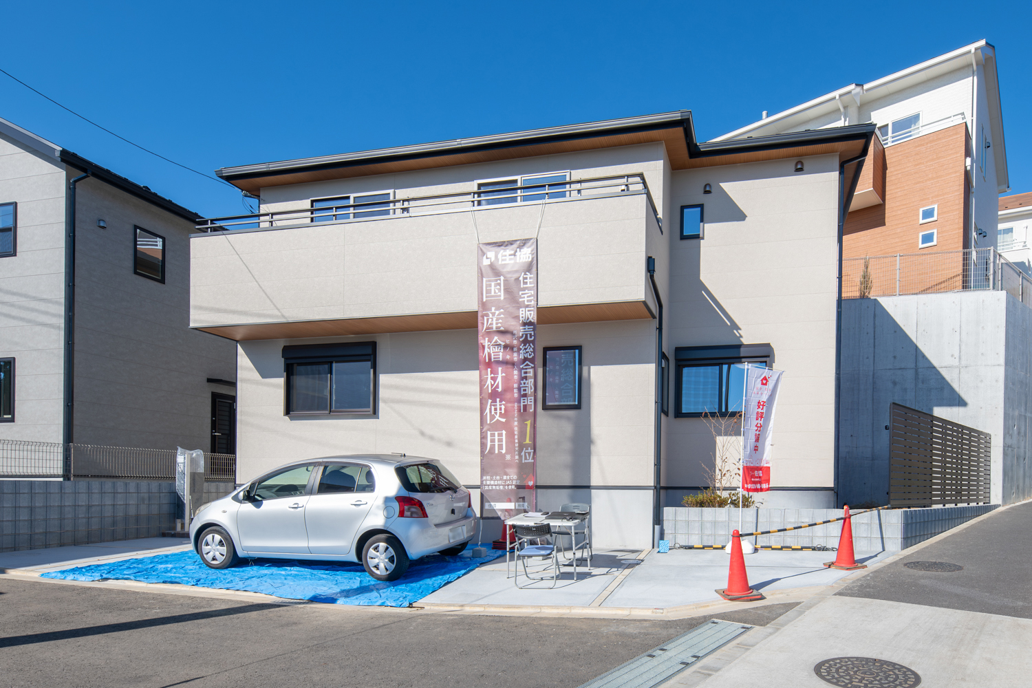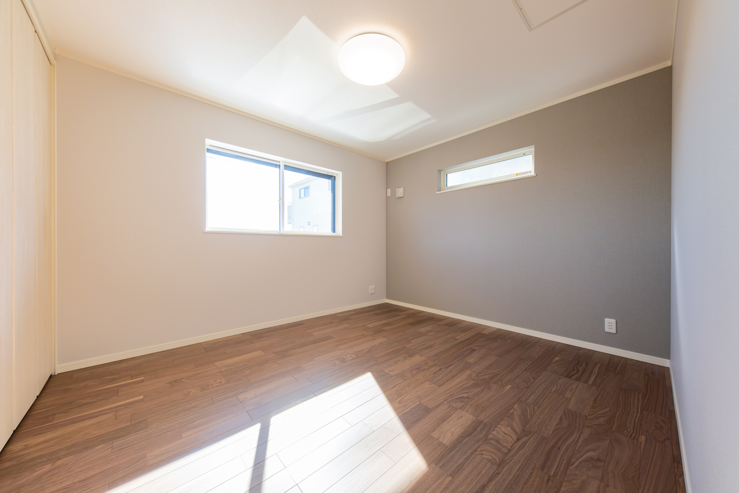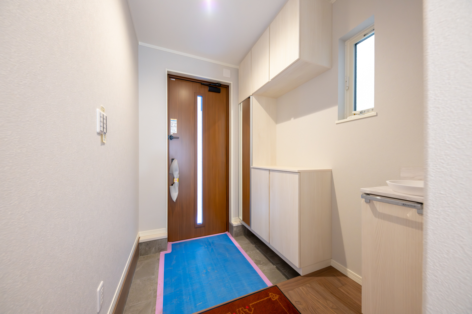日当たりの良い2階リビングは、眺望を楽しみながら過ごせるペニンシュラキッチンや室内物干しが日々の動きを軽やかに支えます。玄関には手洗いを設け、帰宅後の流れもスムーズに。落ち着いた雰囲気でまとめた室内が、住む人の心をゆるやかに満たす心地よいお家が完成しました。