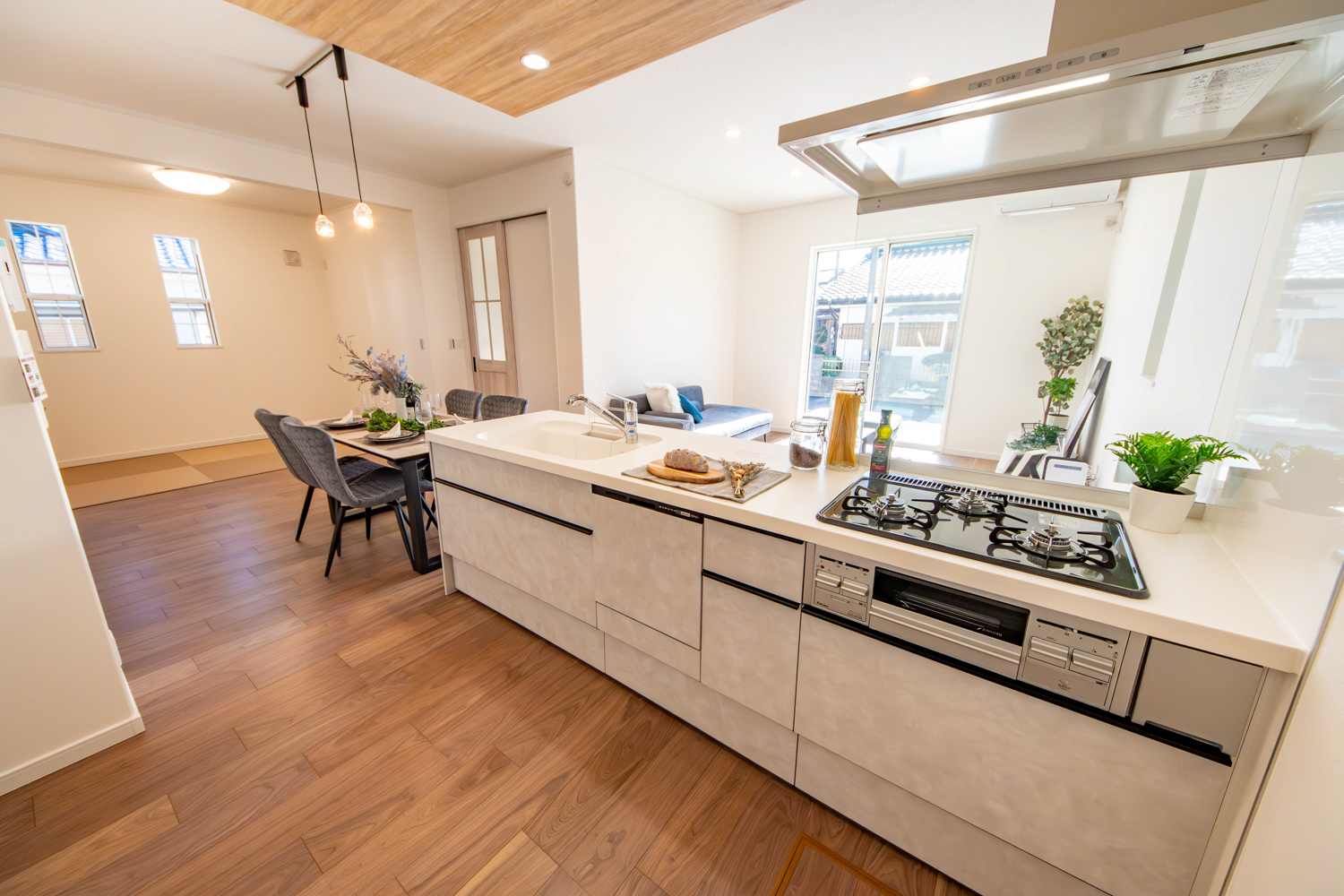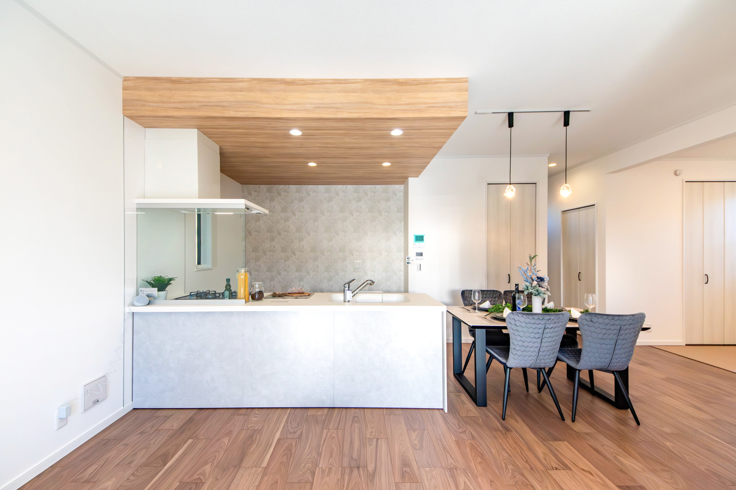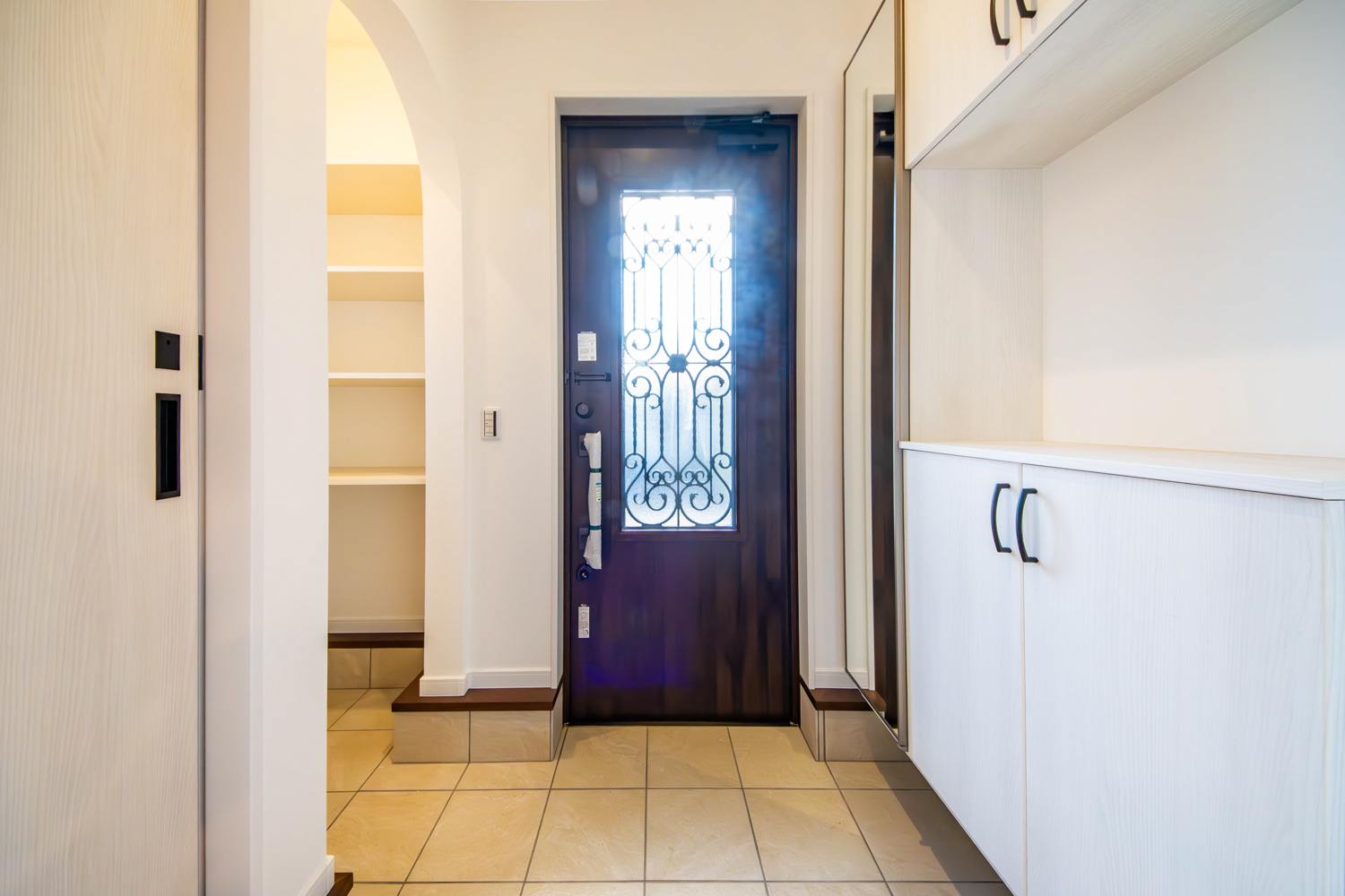 ヨーロピアンシックをテーマにしたテイストに、特別仕様の先進のIoTシステムを組み合わせた住まい。スマートフォンで照明や施錠を操作でき、離れていても暮らしを心地よくコントロールできます。家事の時短を助ける設備も随所に取り入れ、日々を軽やかに整える工夫が息づくお家が完成しました。
