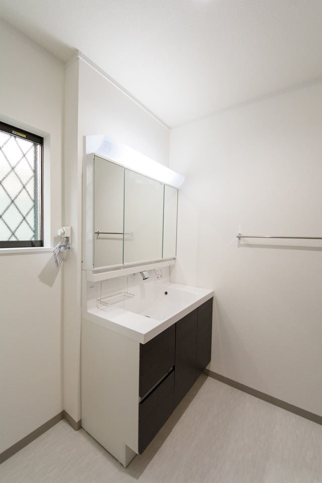 紺青をアクセントにした爽やかで清潔感のあるバスルーム。