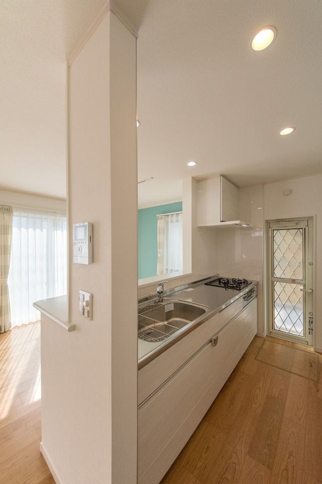 青とグレーのツートンカラーの外観 端正な表情でモダンな雰囲気を演出