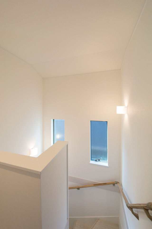 縦スリットから光が差し込み、開放的で明るい空間を演出。