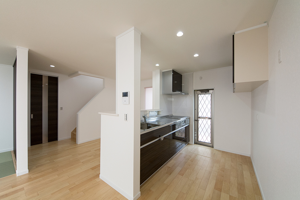 ナチュラルモダン埼玉県入間市30坪以上玄関土間、2階リビング、LDK20帖以上、勾配天井、アイランド/ペニンシュラキッチン