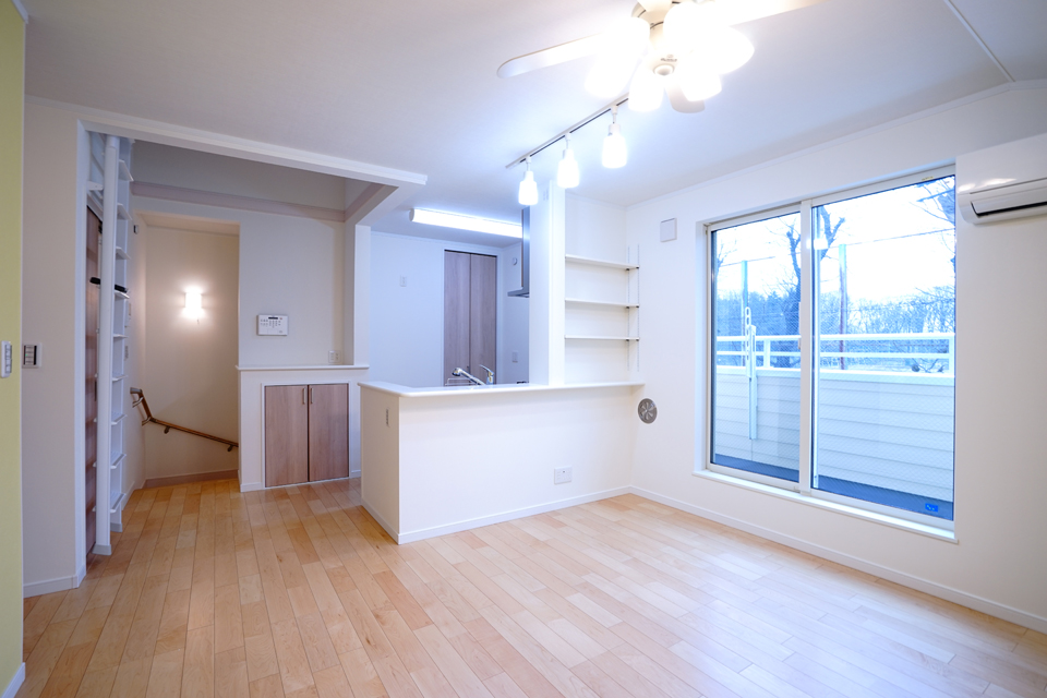 4戸それぞれのインテリアにテーマ性を持たせ、広々としたカウンターキッチン付LDKと洋室、収納を備えています。 2階の2部屋は勾配天井を利用した4帖のロフト付にすることで、解放感のある収納たっぷりの空間に仕上げました。