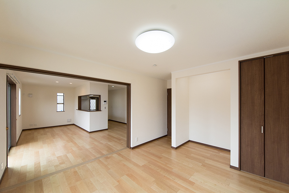 引き戸を開け放てばLDKと違和感なく調和し、開放感いっぱいの大空間に。