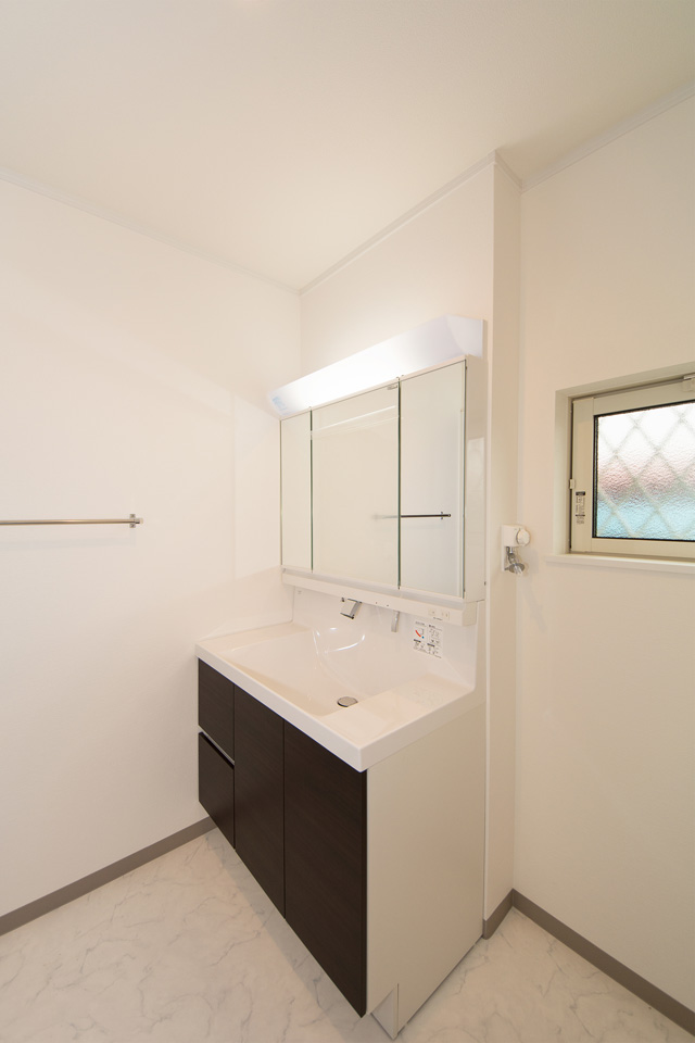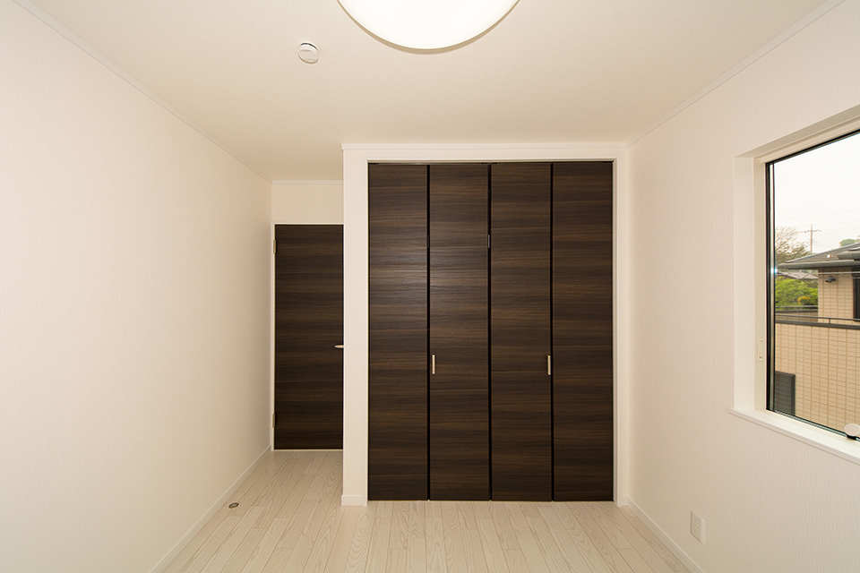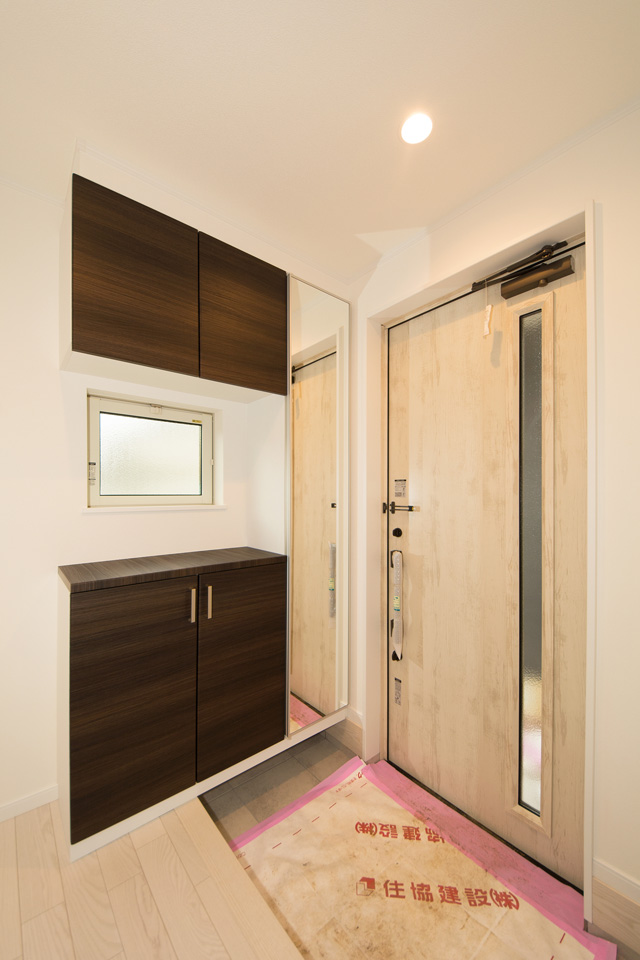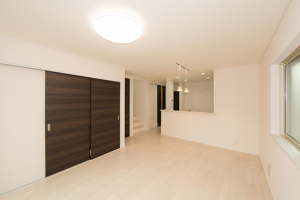 ディテールまでこだわった表情豊かな木目が印象的な外観デザイン。 白で統一したサッシやバルコニー手すりと相まって、スタイリッシュな表情に仕上がりました。
