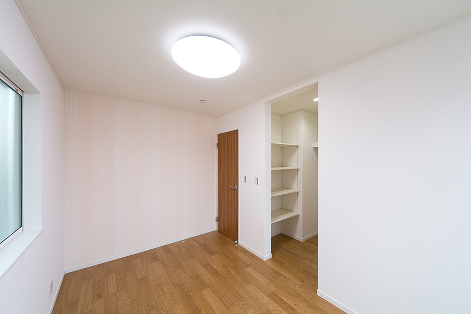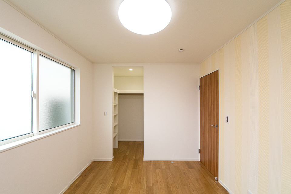 扉をつけないオープンなウォークインクローゼットをしつらえた2階洋室。