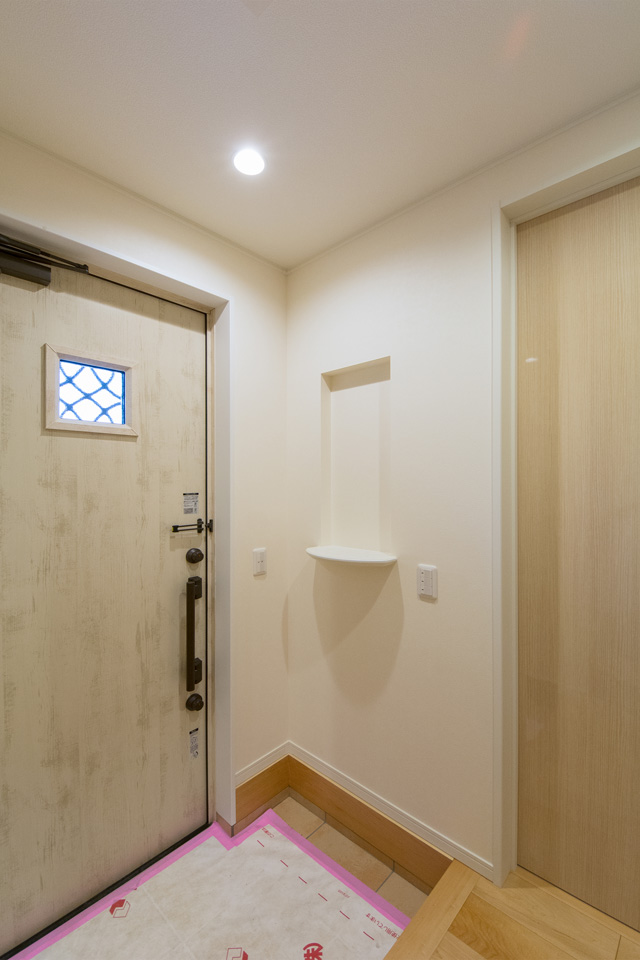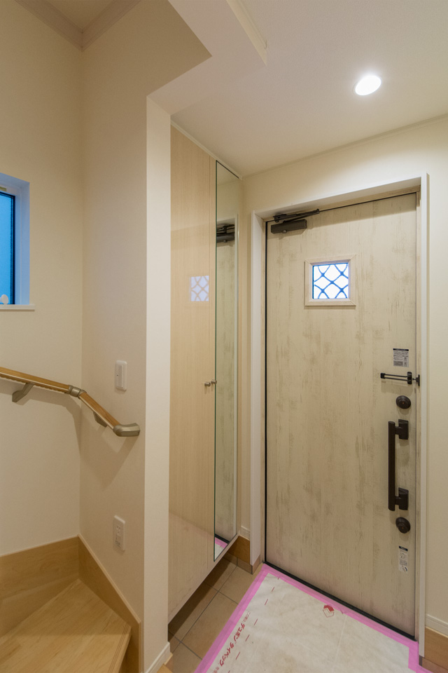 白にマーブルキューブ柄を合わせた外観 温かみのあるナチュラル&モダンな佇まい白にマーブルキューブ柄を合わせた外観 温かみのあるナチュラル&モダンな佇まい