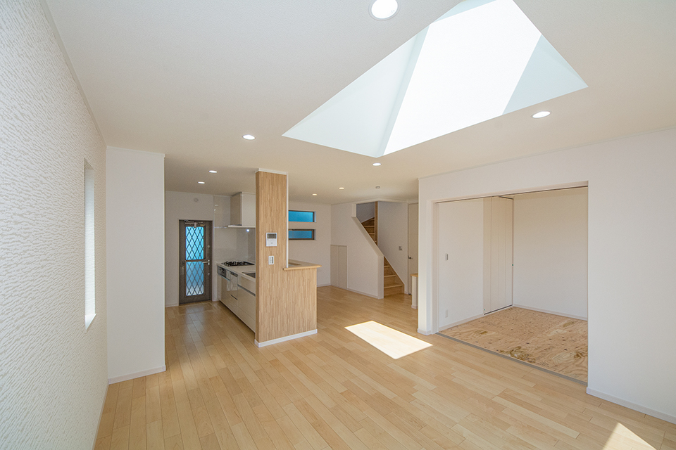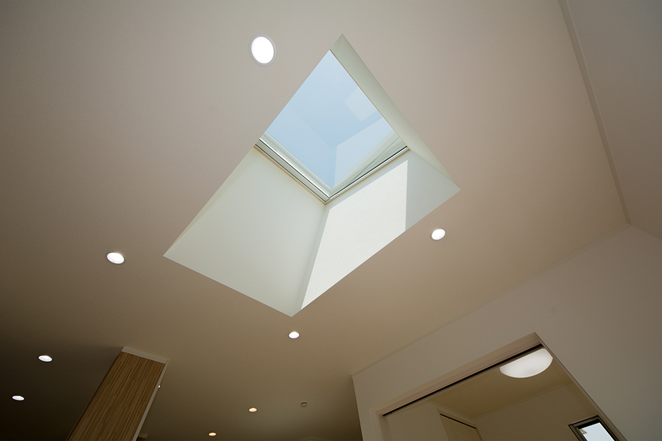 リビング上部にはトップライトを設え、空間に自然のやさしい光を取り込みます。