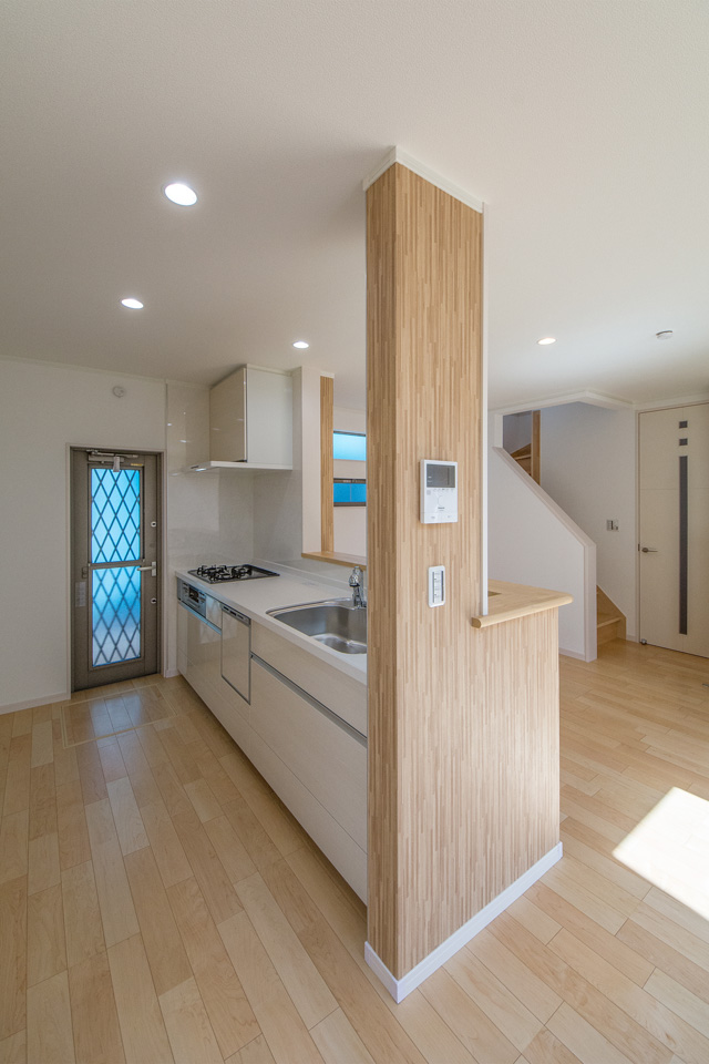 シンプルモダン埼玉県狭山市30坪以上玄関土間、リビングイン階段、ハイスタッド、アイランド/ペニンシュラキッチン
