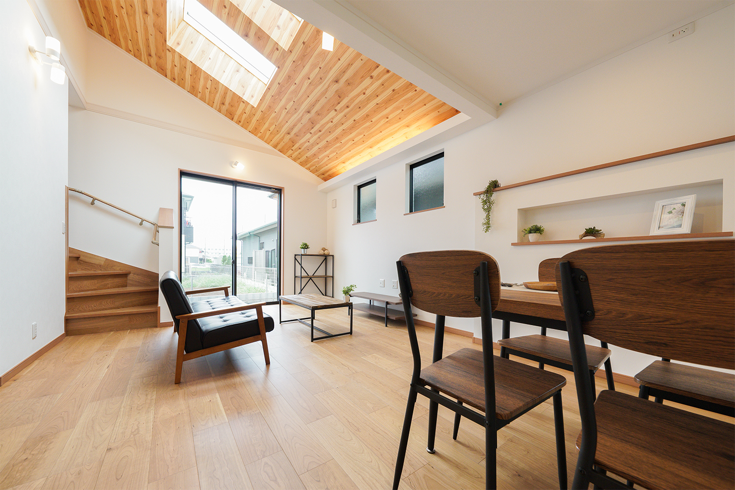 ナチュラルモダン埼玉県所沢市27坪~30坪未満2階リビング、勾配天井、回遊型動線