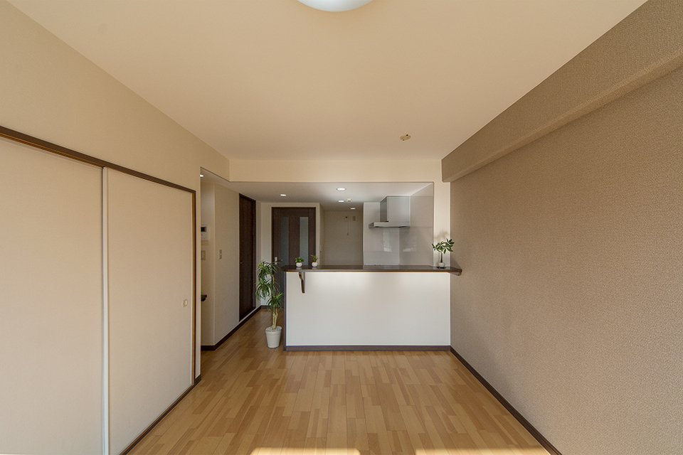 築35年以上の老朽したマンション室内を全面リフォーム。 家事動線を考えた間取り変更や水まわりの交換など、快適な空間へと大変身。