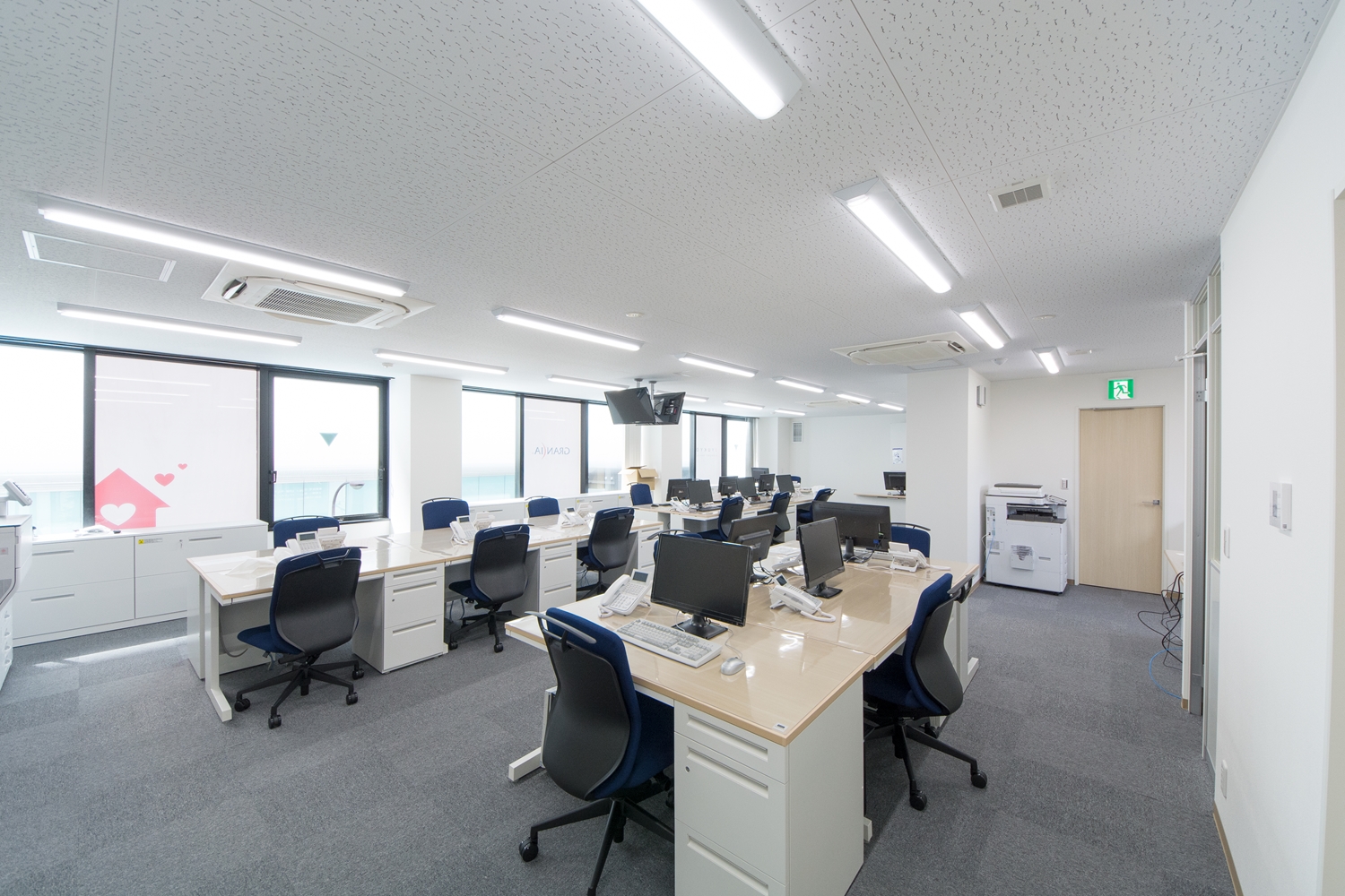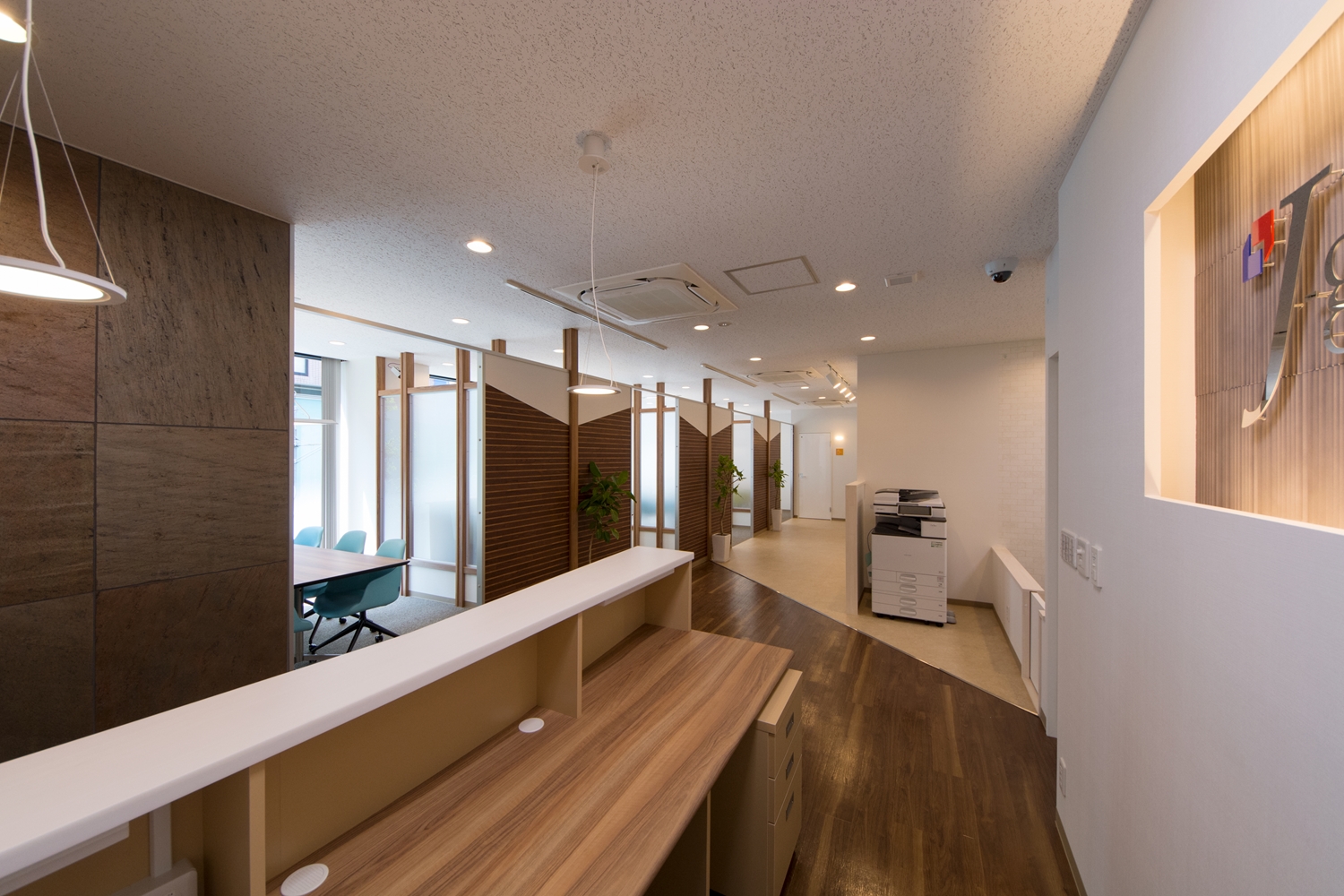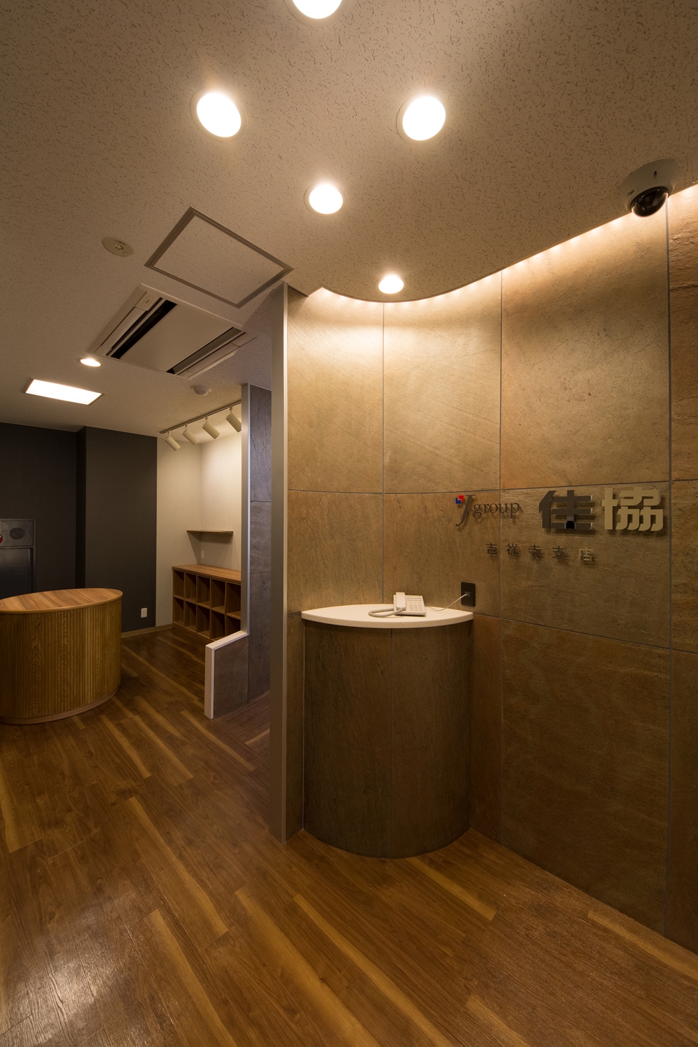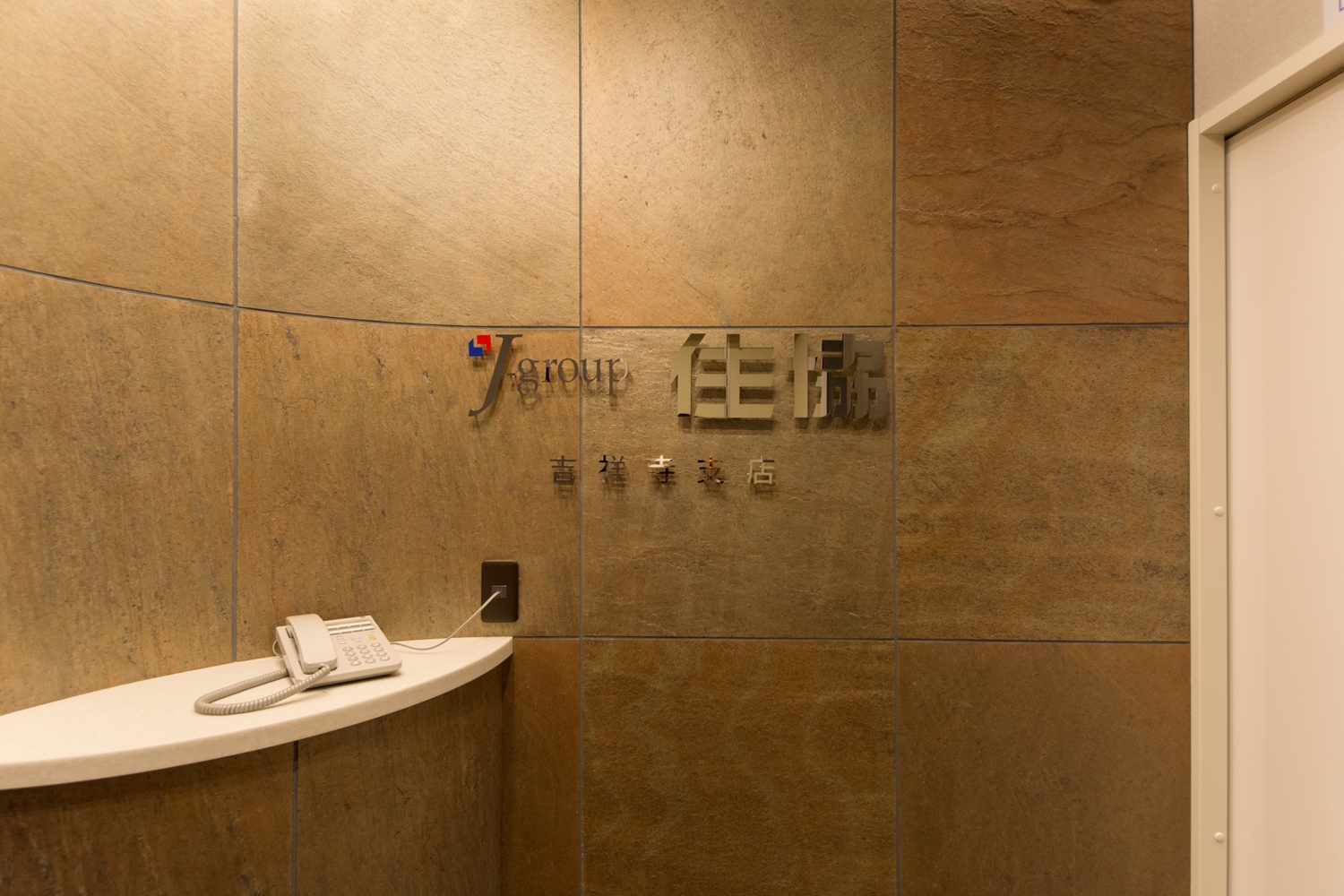 住協吉祥寺店リノベーション工事。シックで高級感のあるエントランス、ナチュラルで落ち着いた印象の展示スペース、ミーティングブースは自然光が良く入り開放的です。お客様を始め、従業員も気持ちよく過ごせる空間となりました。