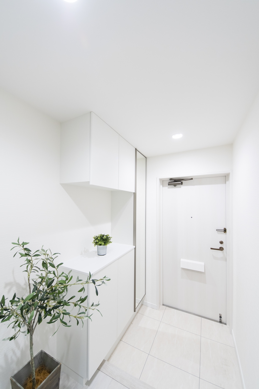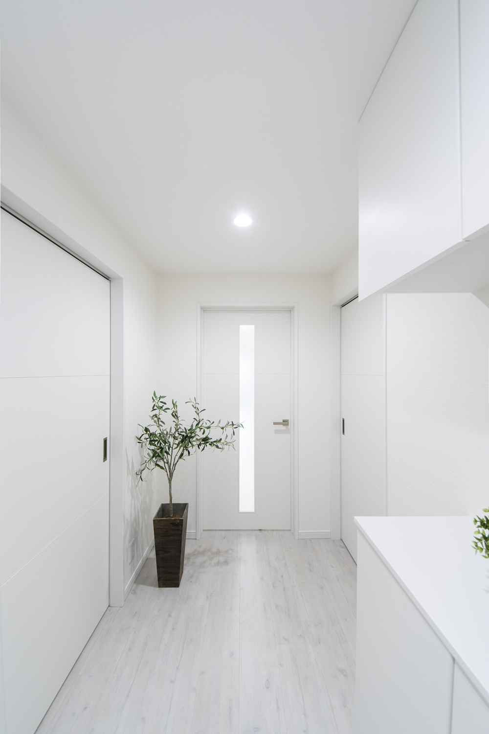 白を基調とした、清涼感のある明るい玄関ホールに仕上がりました。