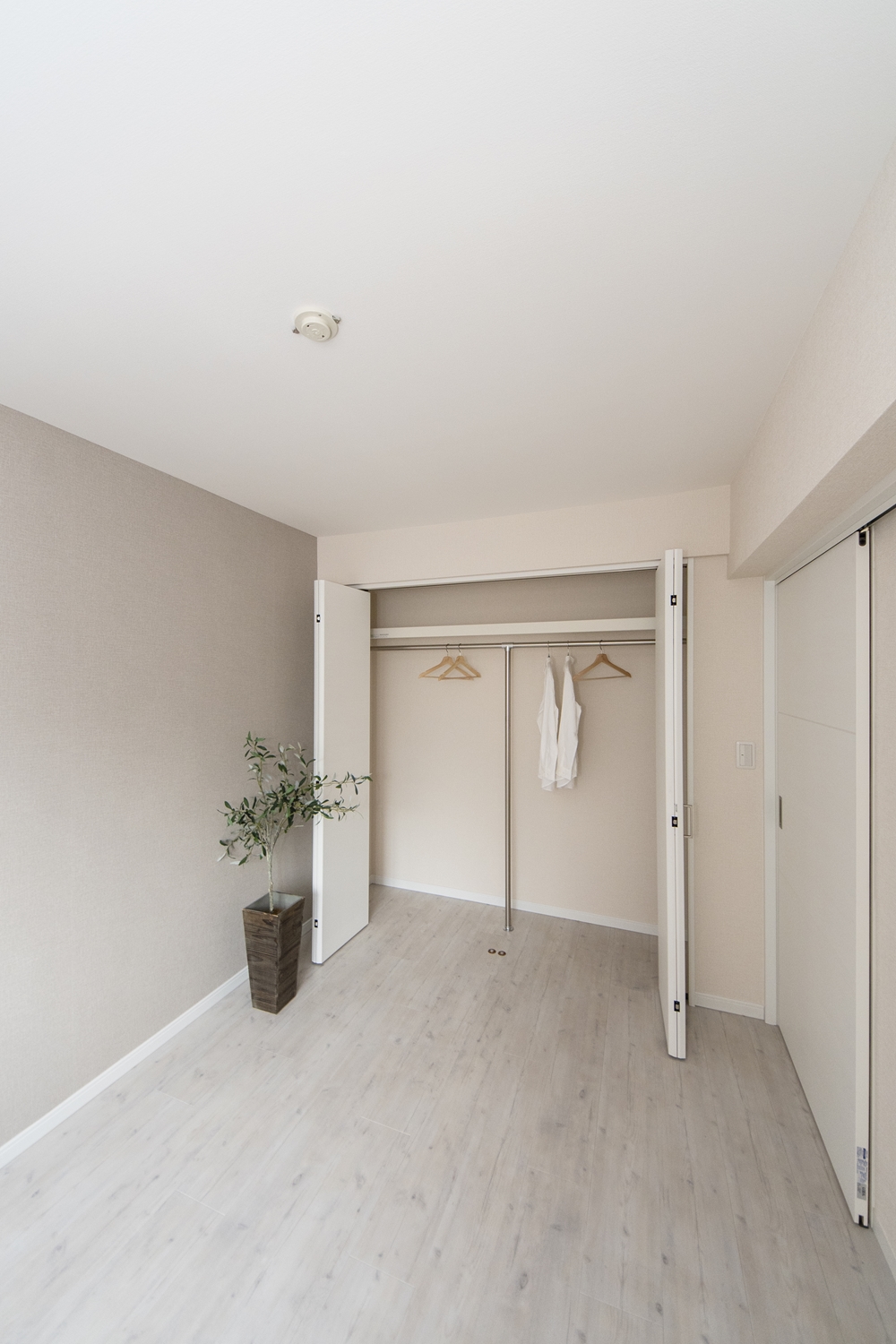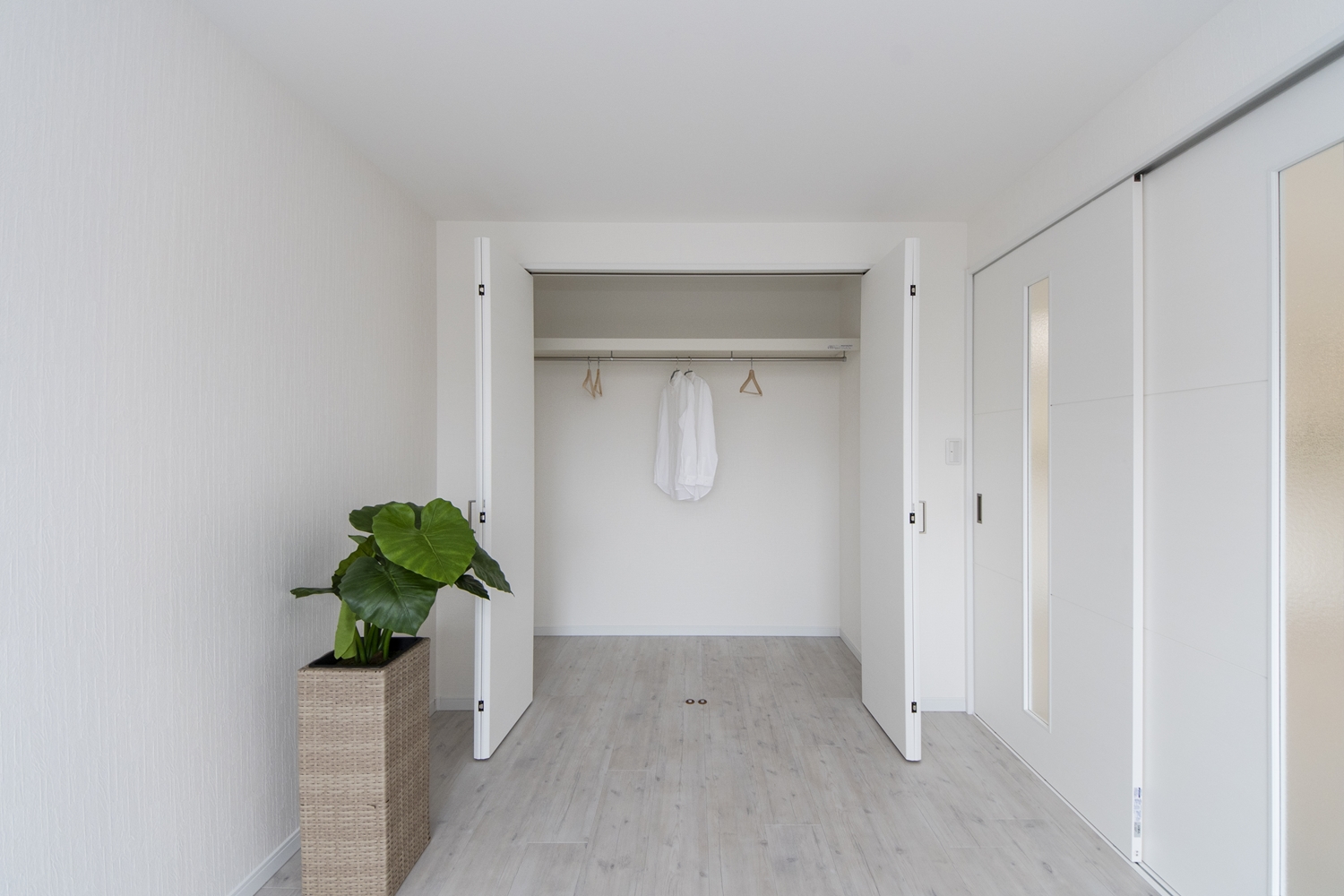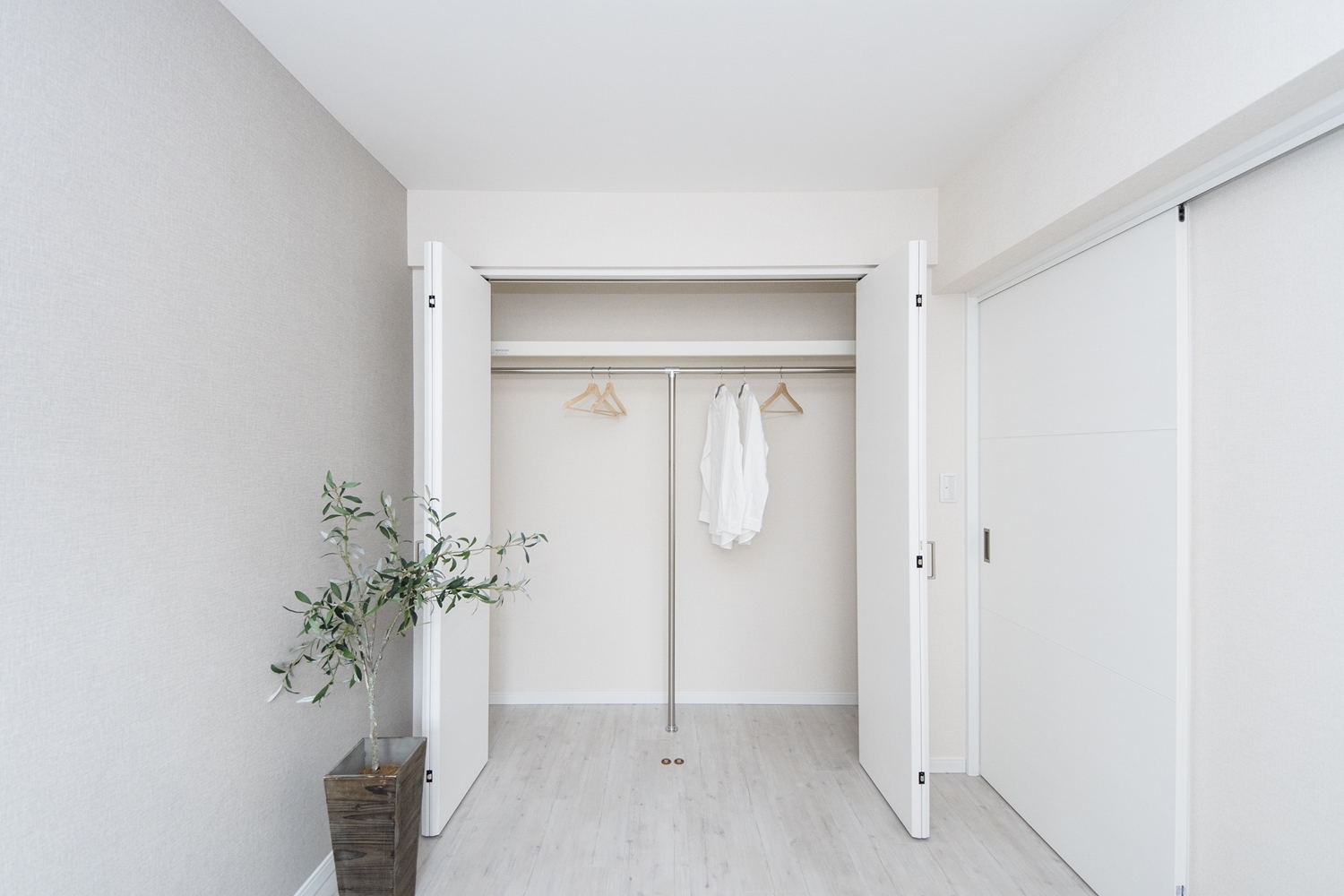 白をベースにして白をベースにして、明るく清涼感のある空間に。既存のクローゼット内部を造作し、快適に収納できるようになりました♪