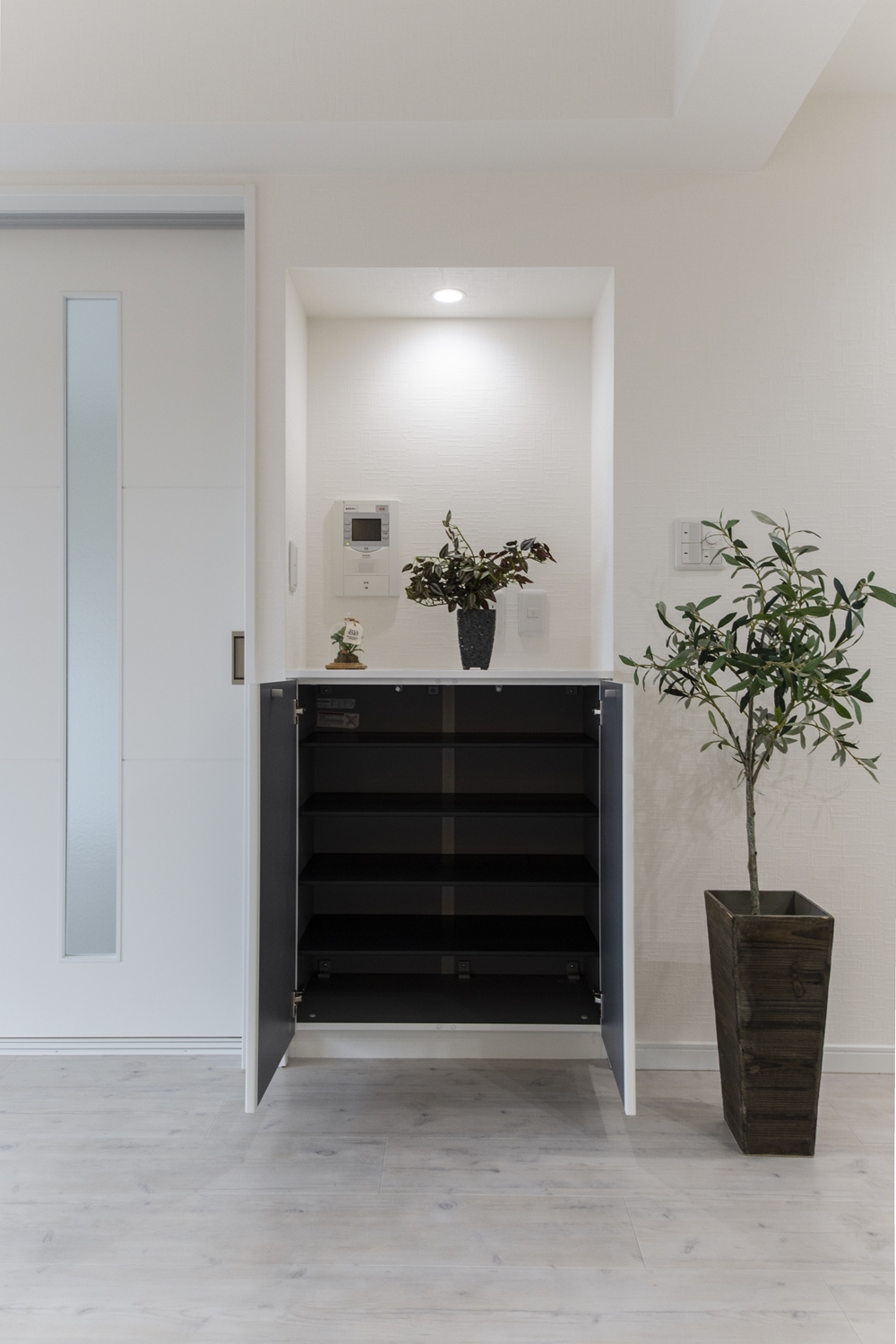 白を基調とした、清涼感のある明るい玄関に仕上がりました。