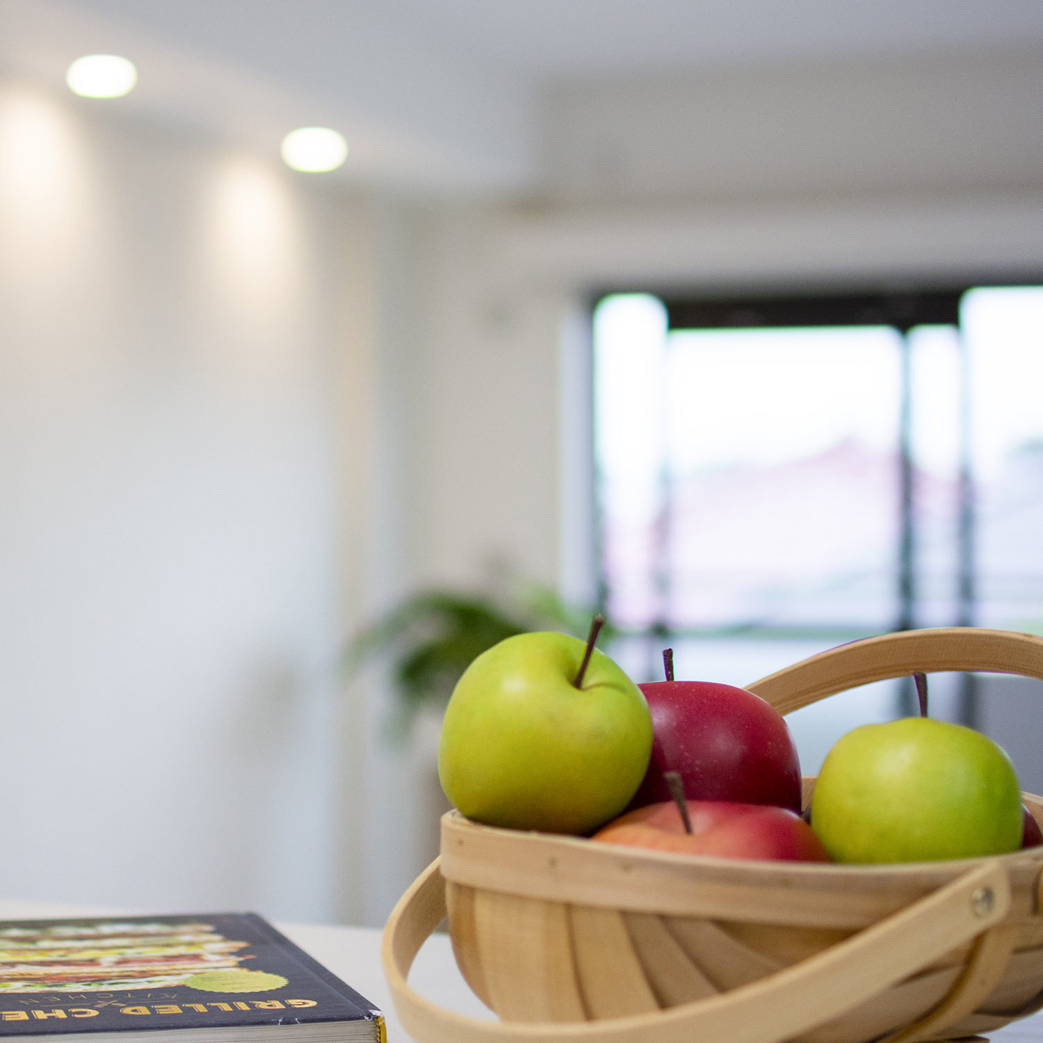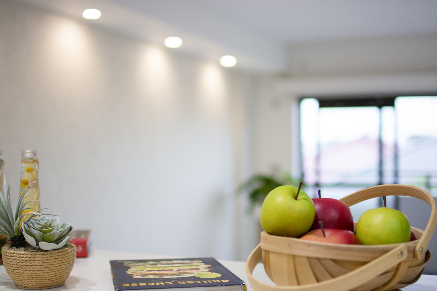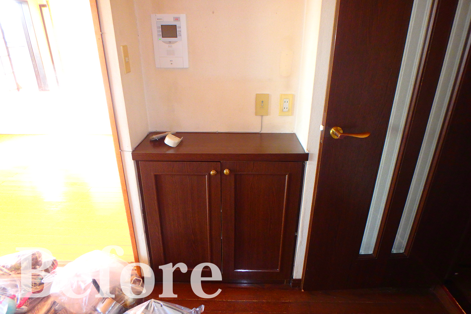 TVドアホンのカウンタースペースに、ダウンライトを施しました。アイテムに光を当てて、より雰囲気のあるインテリアを演出できます。