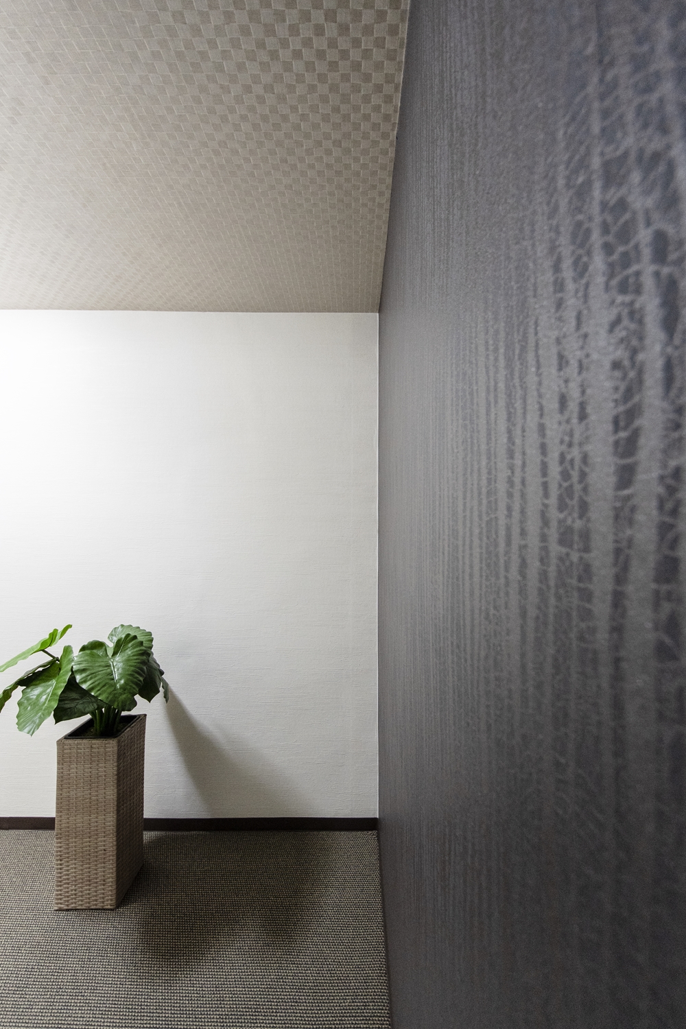 素材感やトーンの違う壁紙をアクセントにして、エキゾチックで大人な雰囲気を演出しました。