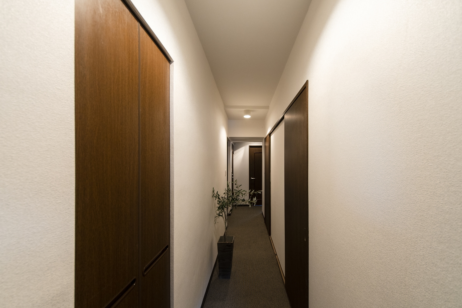 廊下/カーペットを張り替えました。シックなカラーを配色して、ホテルの廊下のような落ち着いた雰囲気になりました。