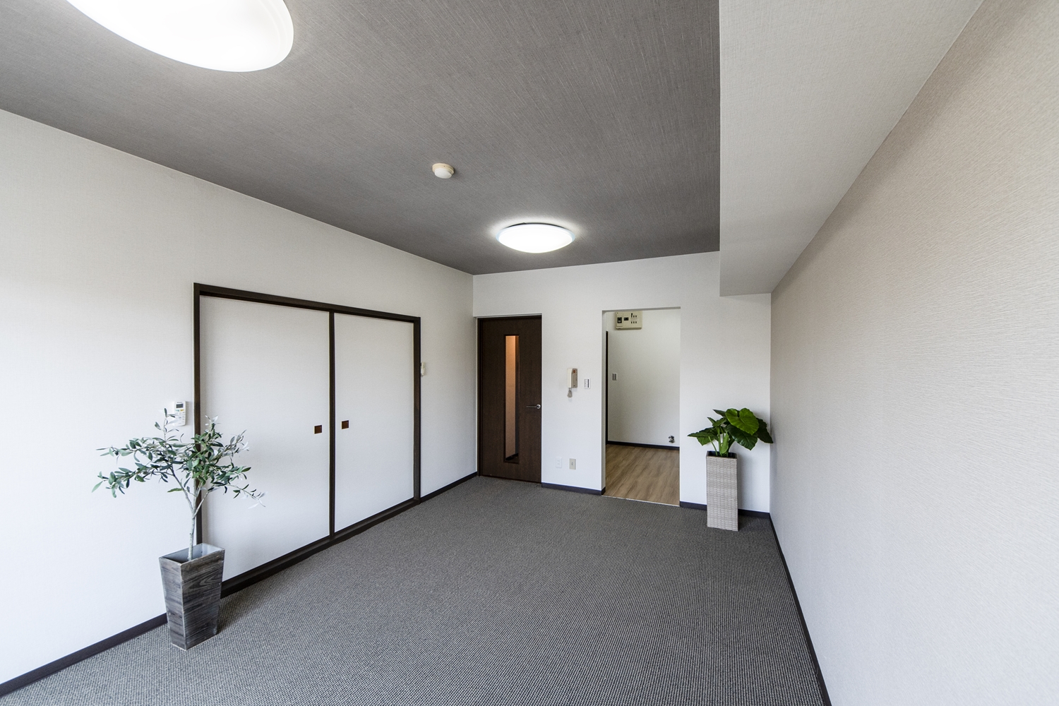 洋室/天井をはじめお部屋全体のクロス、カーペットの張り替えを行いました。