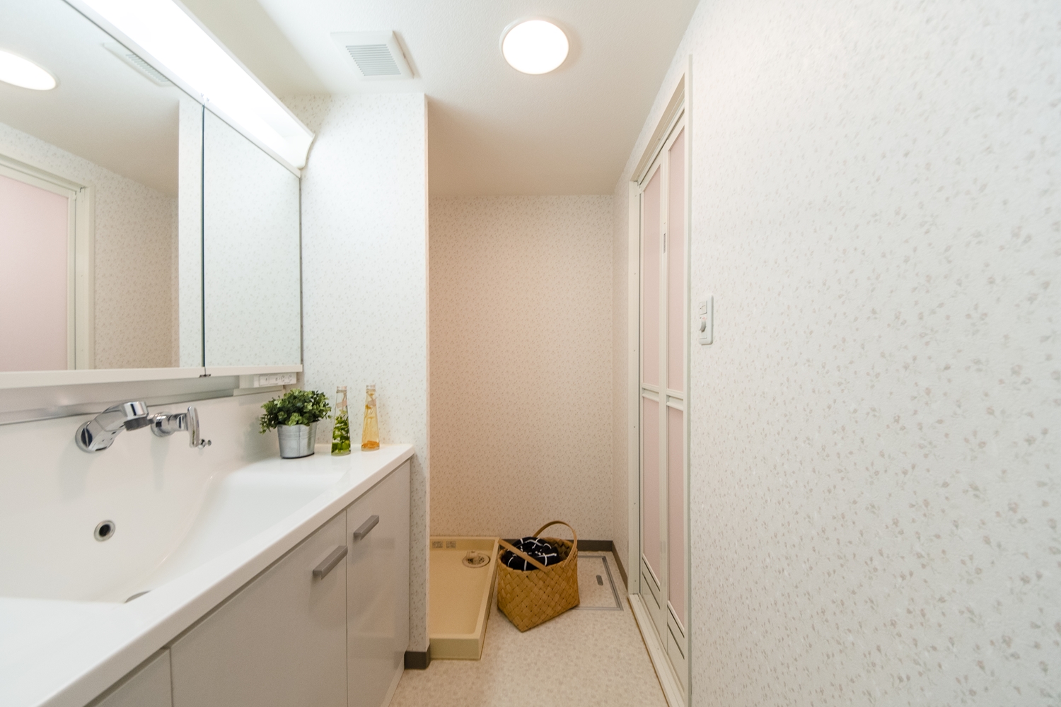 サニタリールーム/洗面台を交換し、室内のクリーニングを行いました。