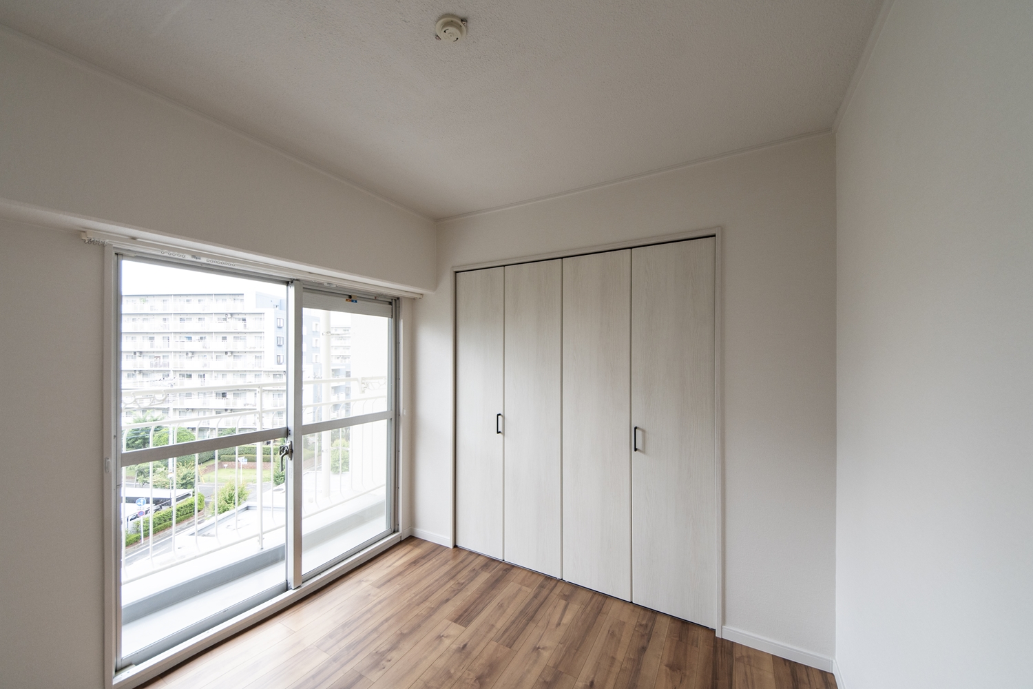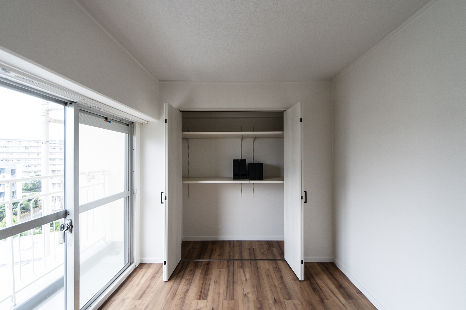 洋室/押入れを折れ戸タイプのクロゼットに変身させました。クロゼット内部には可動棚を設置して機能的です♪
