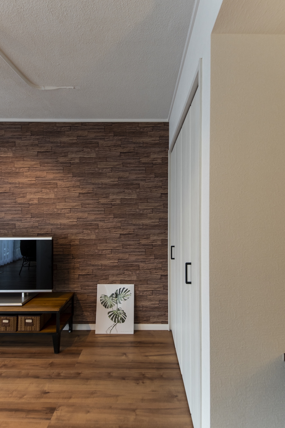 洋室/建具の取換え、クロスの貼り替えを行い、既存フローリングに新しいフローリングを重ね張りしました。木の温もりを感じるナチュラルな空間に仕上がりました。