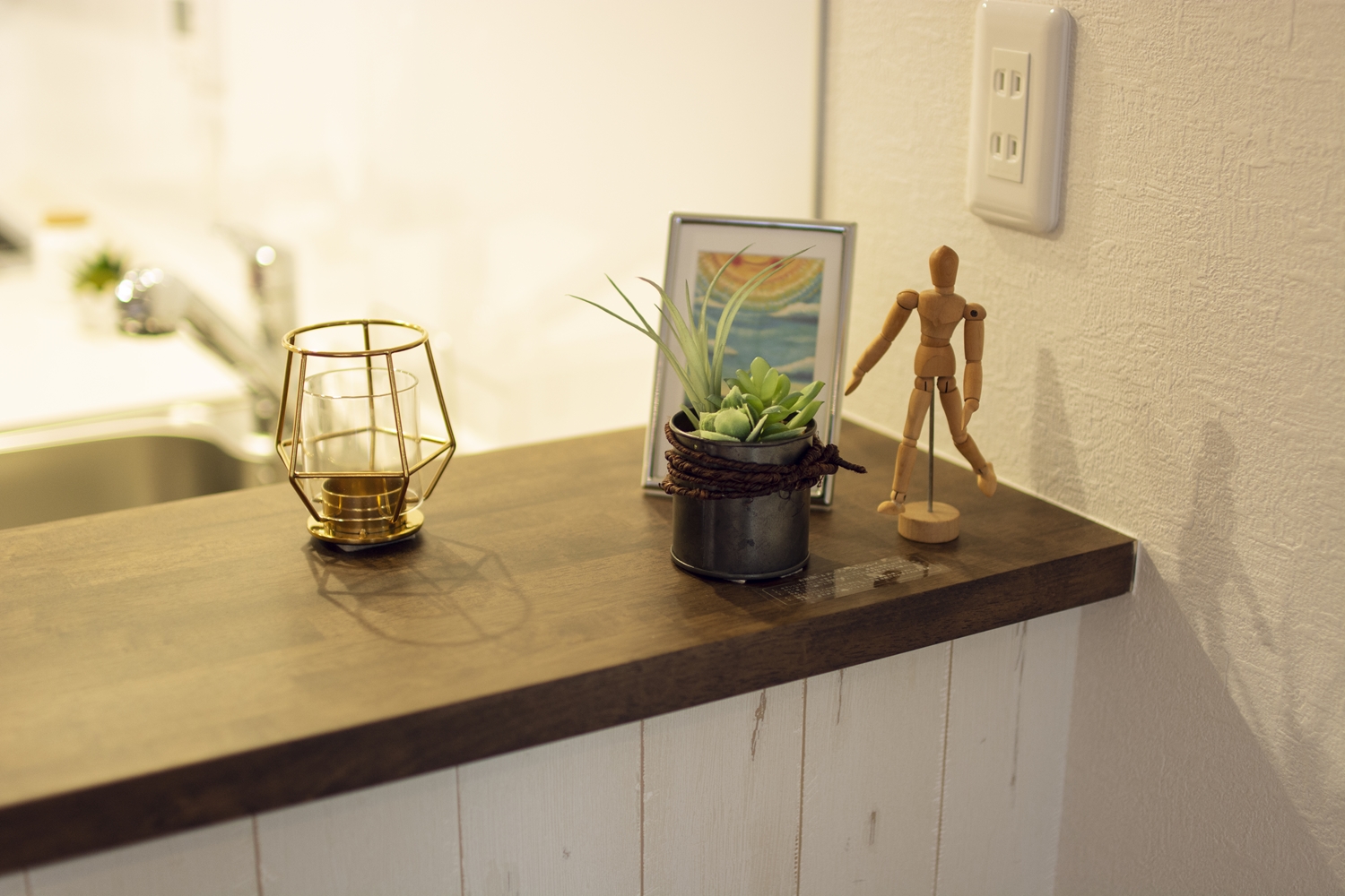 キッチンサイドのカウンターにはアイテムを飾ったりインテリアも楽しめます♪