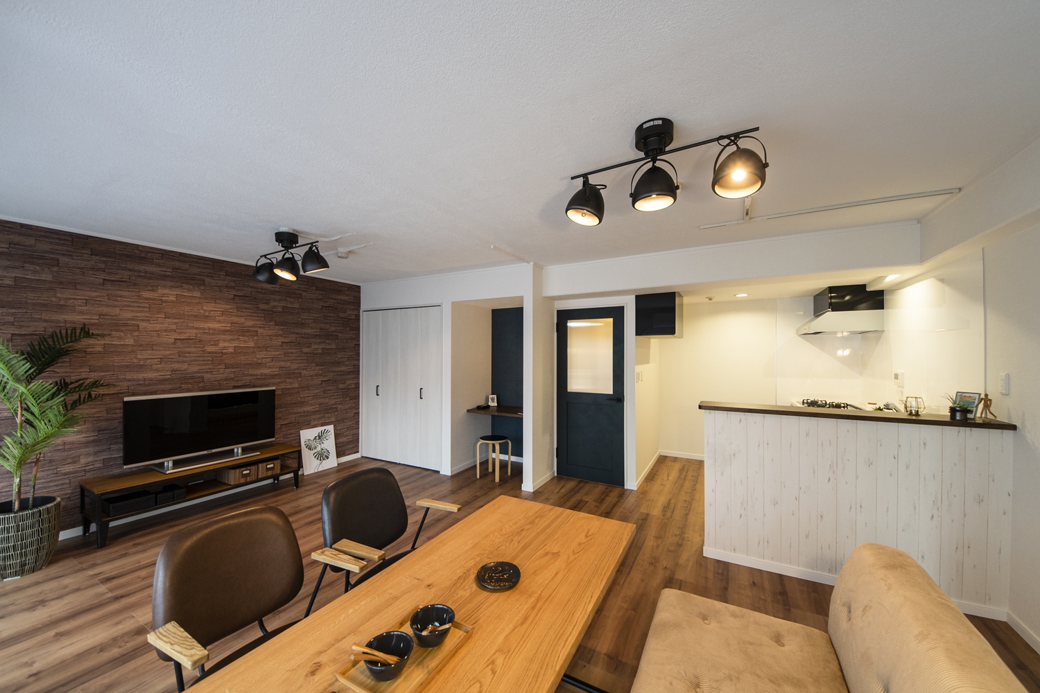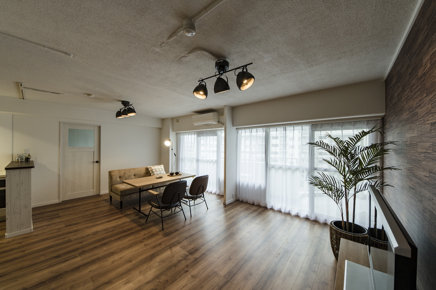 築37年のマンションが扉をあけると驚きの劇的変化。「ビンテージ・モダン」をコンセプトにリノベーション工事を行いました。