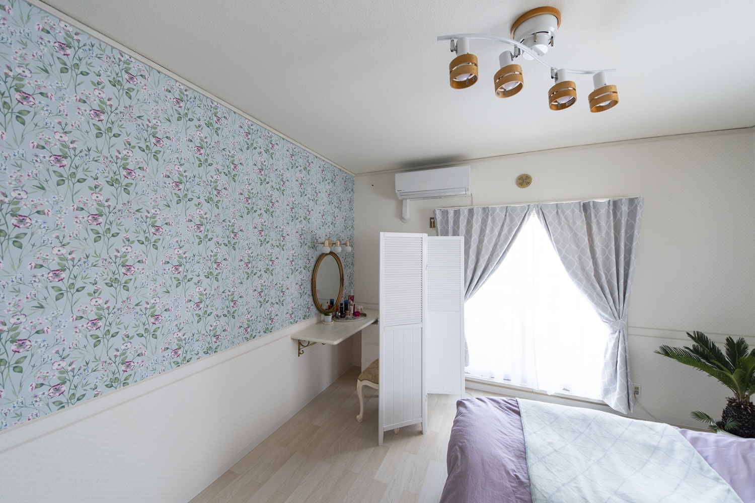 「プリンセスのお城の様なお部屋にしたい!」という奥様の憧れを叶えるべく、マンション一室を全面リフォームしました。全室クロス・床材の張替え、水廻りの交換を行い、和室はガーリー&スイートな、可愛らしい洋室に!よくある日常が、夢の空間に大変身しました!