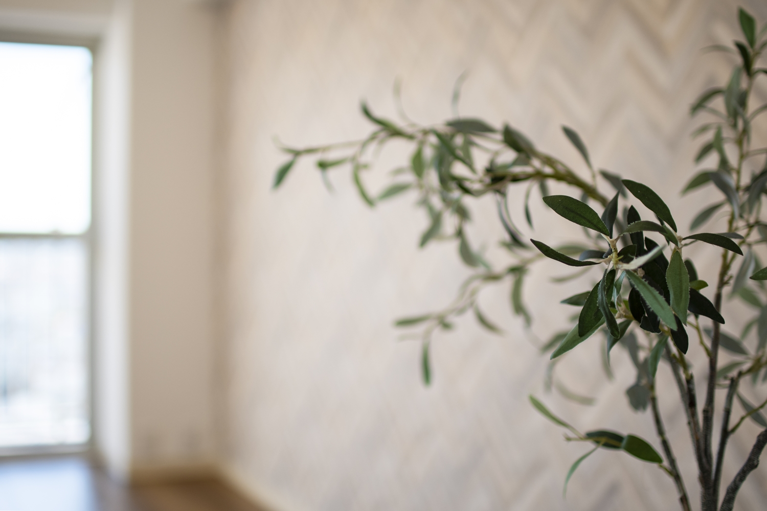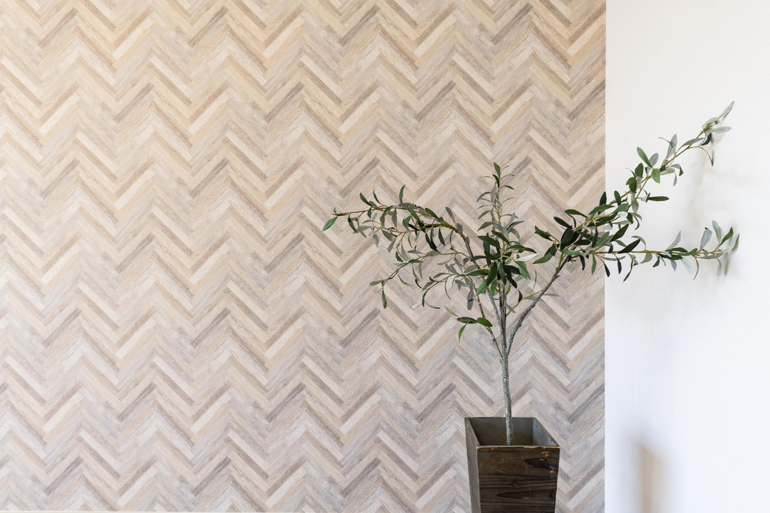 ウッド調のヘンリーボーン柄クロスをお部屋のアクセントにしました♪