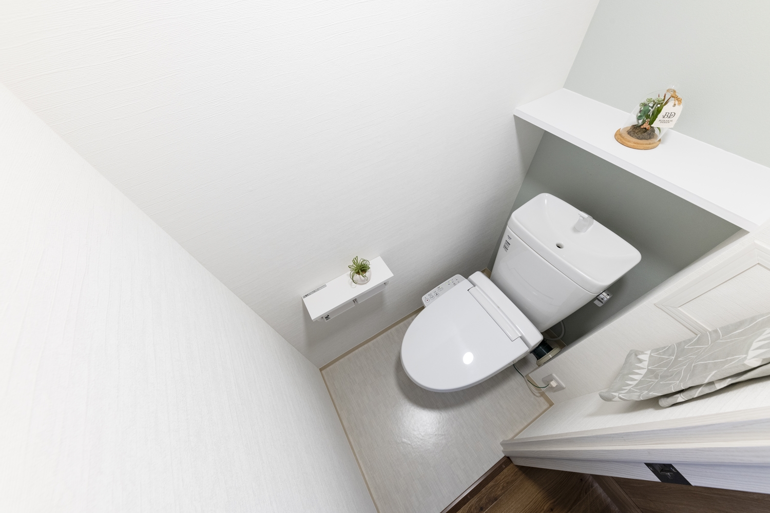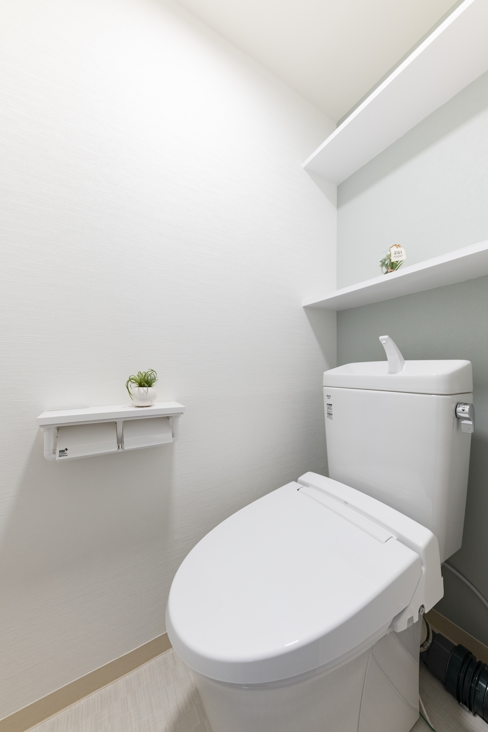 白を基調とした、清潔感のある空間に大変身しました!ペーパーホルダーやウォシュレットトイレに交換して機能的になりました。