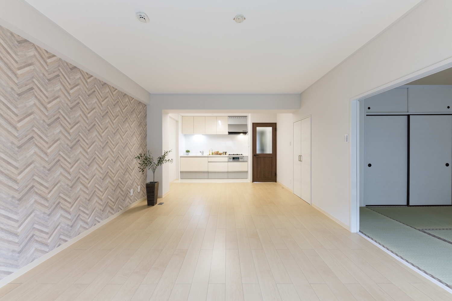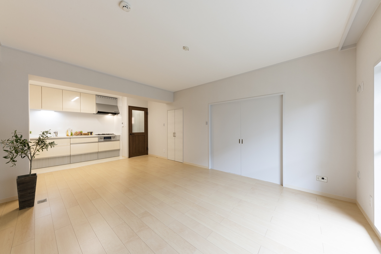 天井・壁・フローリングの貼り替え、照明や建具の交換を行いました。ナチュラルで優しい印象のLDKに生まれ変わりました♪