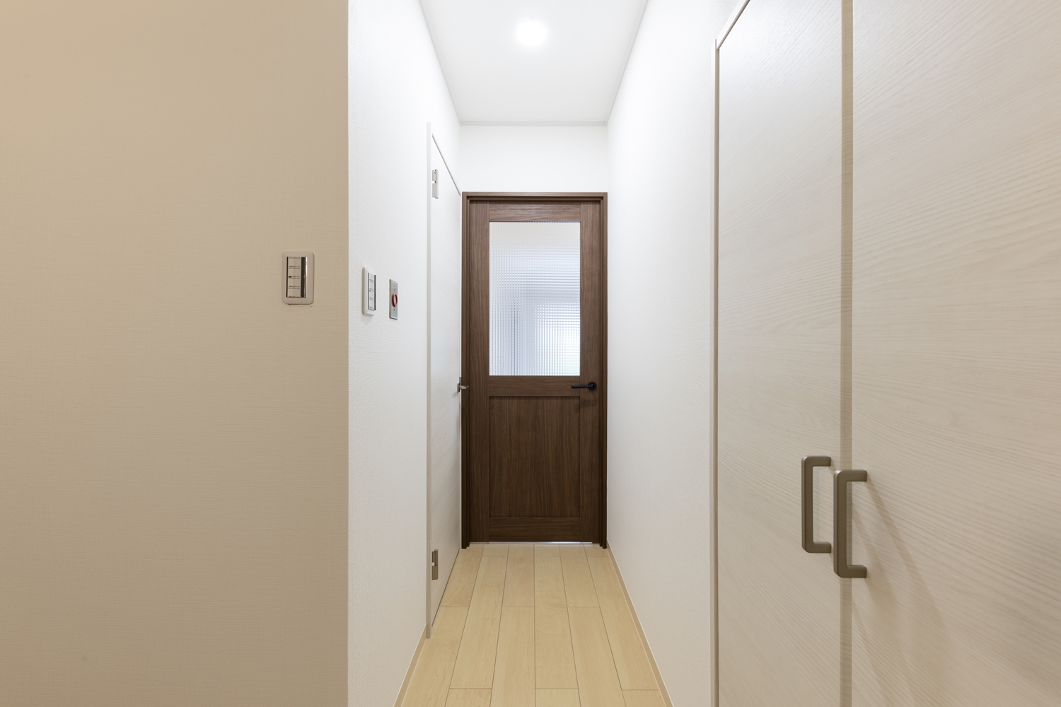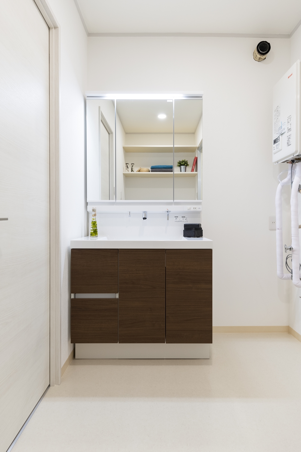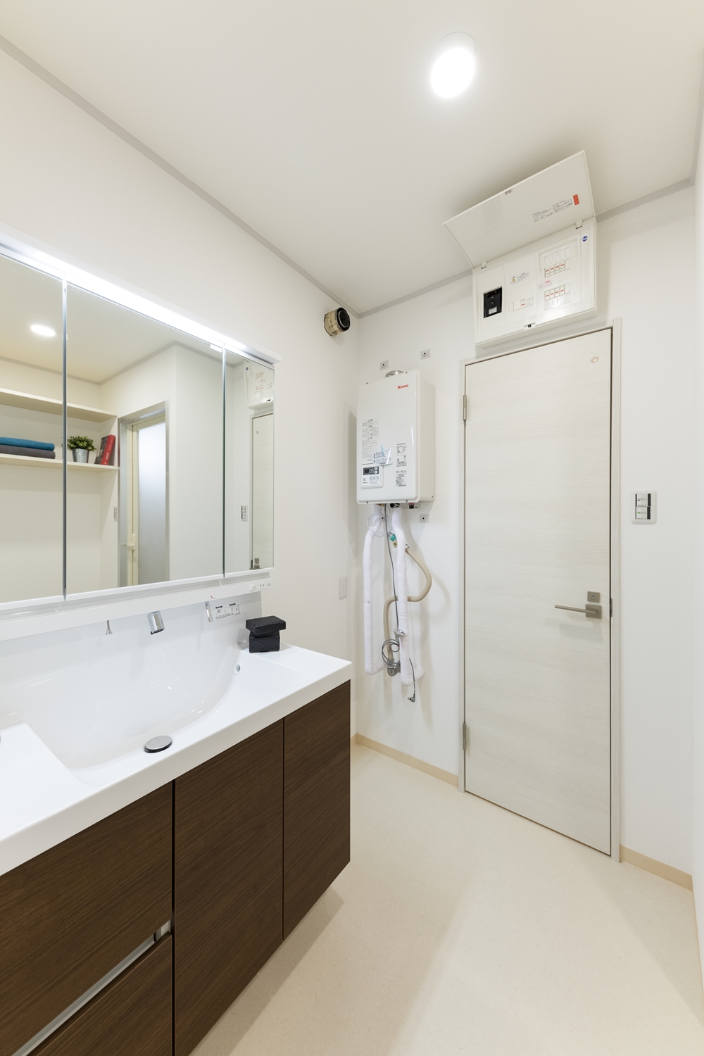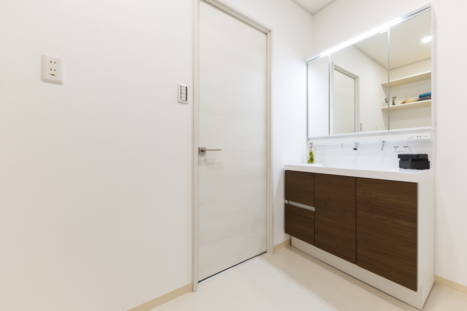 洗面室/プライバシーを考慮して、洗面室と廊下の間にドアを設けました。
