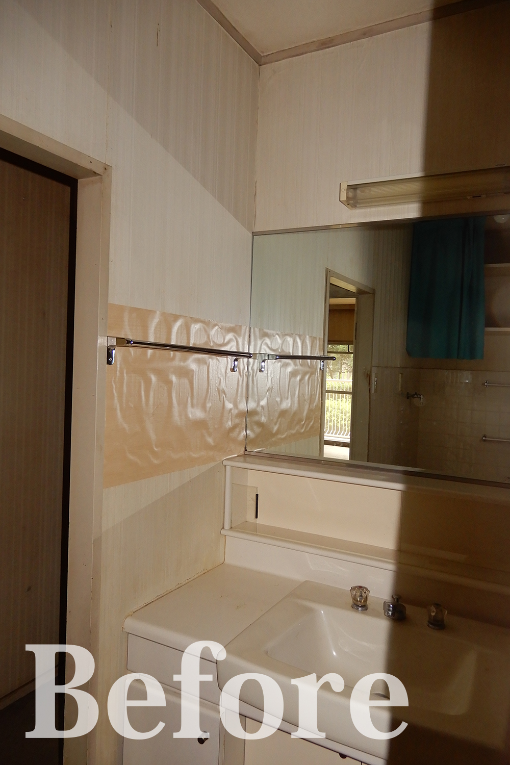 洗面室/洗面化粧台・照明の交換、天井・壁のクロス・床の貼り替えを行いました。白を基調とした清潔感のある空間に仕上がりました。