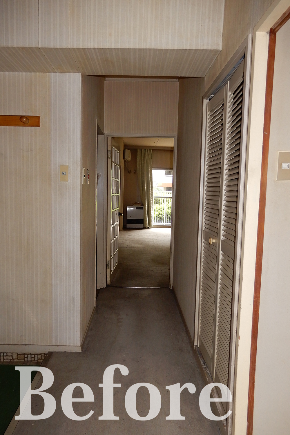 廊下/天井・壁のクロス、床材の貼り替えを行いました。リビングドアのガラスからも光が入り、明るい空間に大変身しました!